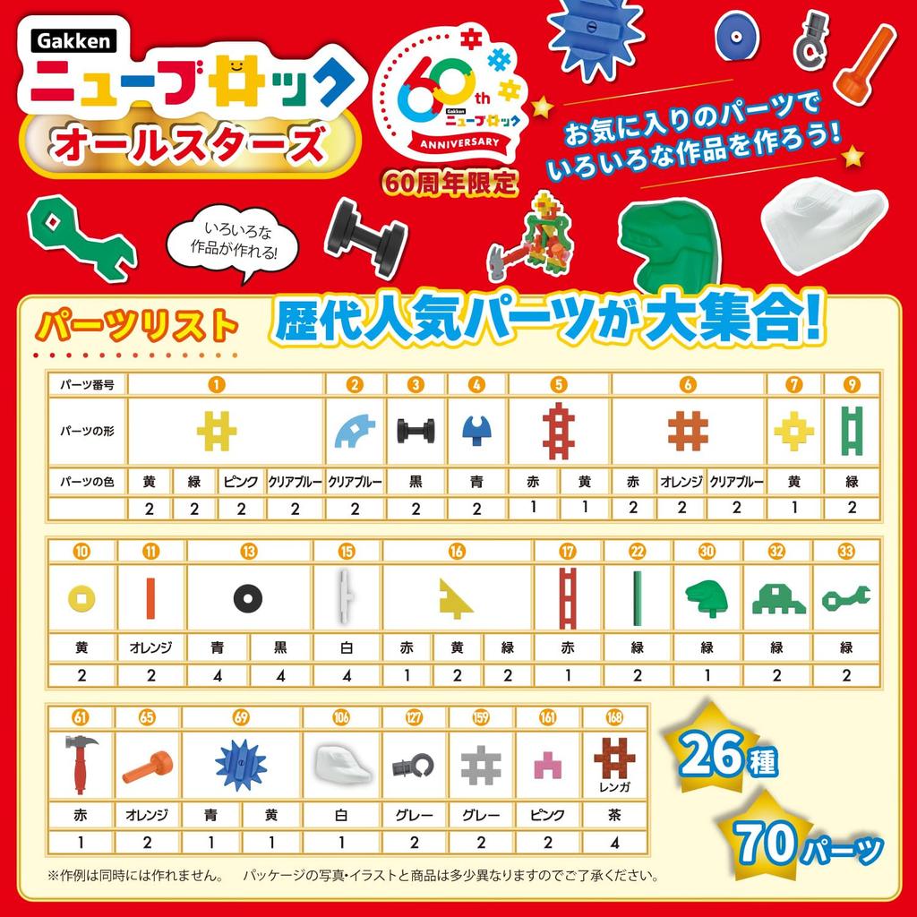 To celebrate the 60th anniversary of New Blocks, we've gathered all the popular parts from past generations! This one set allows you to enjoy the famous parts from popular sets!