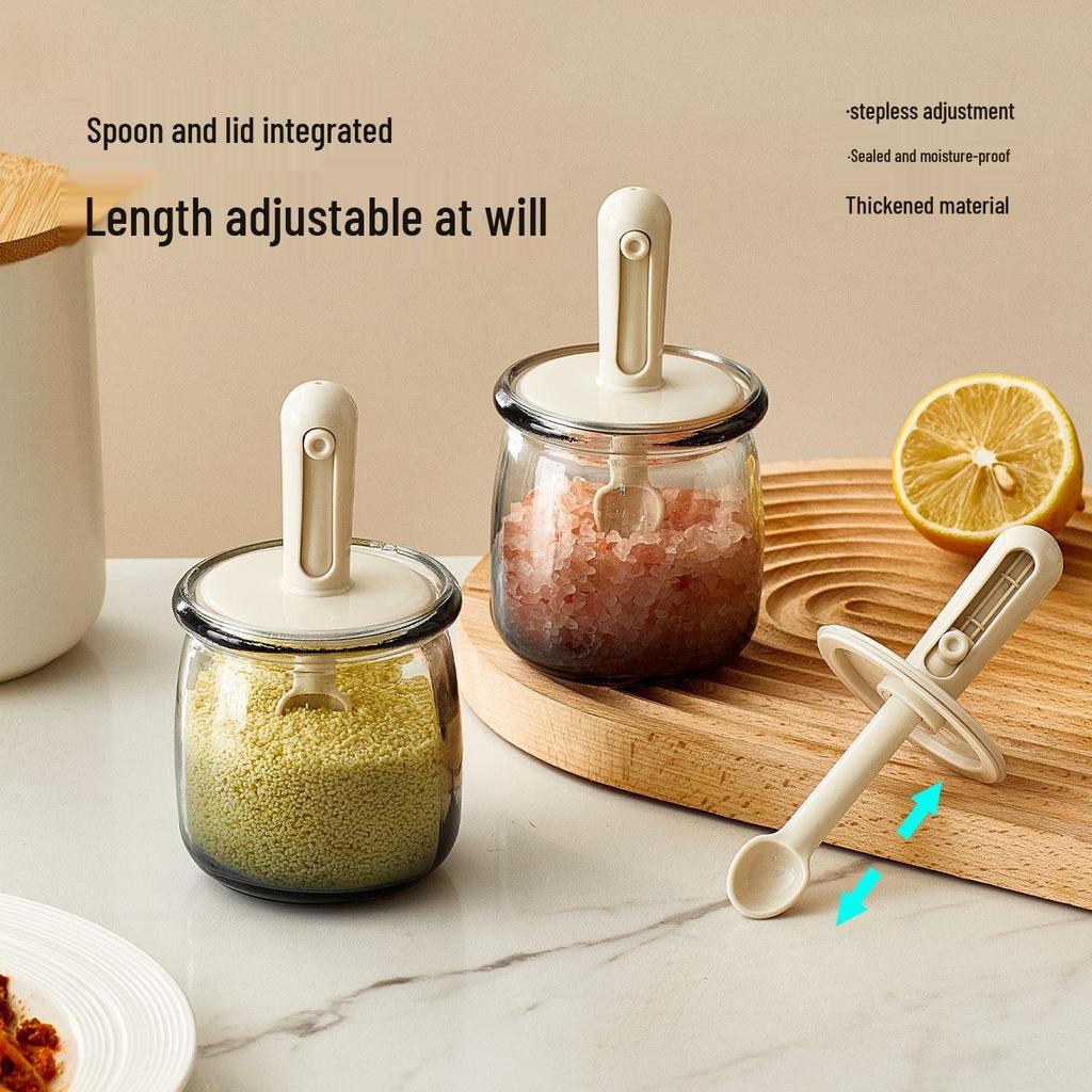 Стеклянные банки для приправ с выдвижной ложкой-крышкой для соли, специй и глутамата натрия