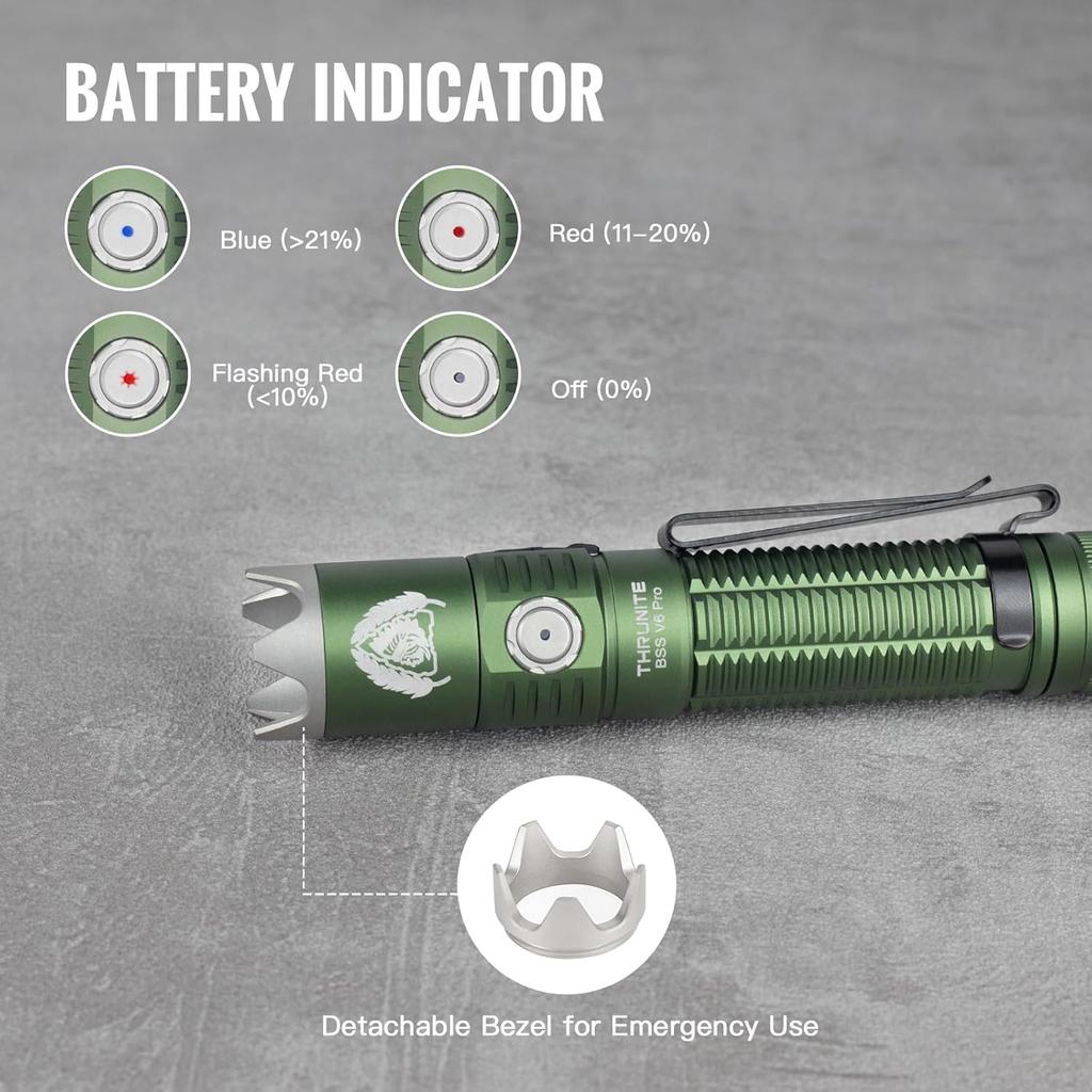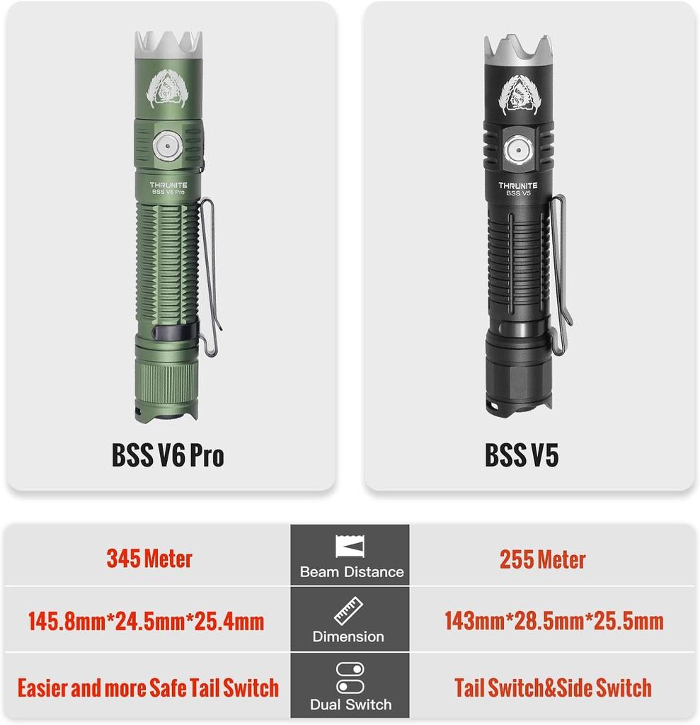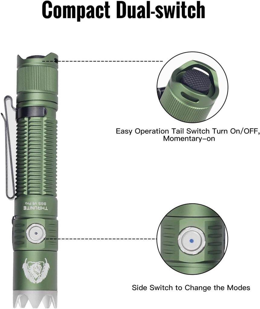 ThruNite BSS V6 Pro Tactical Flashlight, USB-C Rechargeable, Up to 1705 Lumens, 6 Lighting Modes, Dual Switch (Dark Green, CW)
