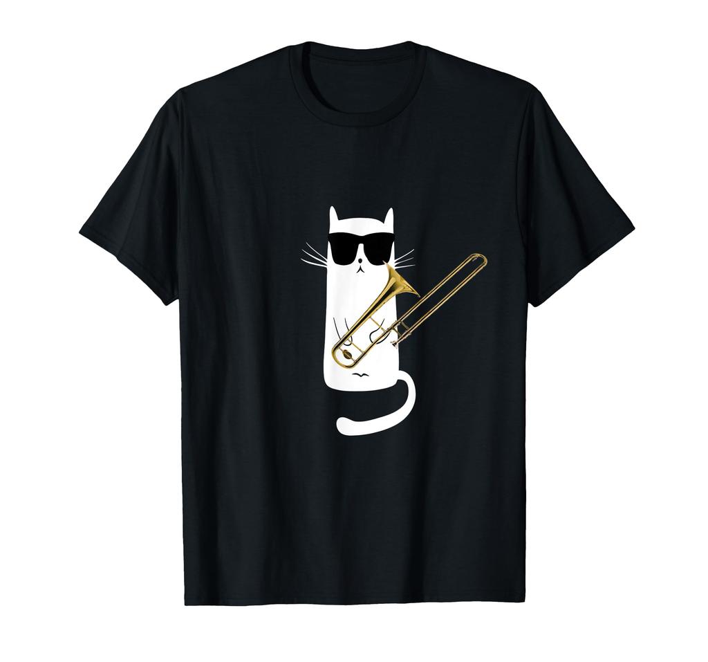 Смешной кот в солнечных очках, играющий на тромбоне, футболка