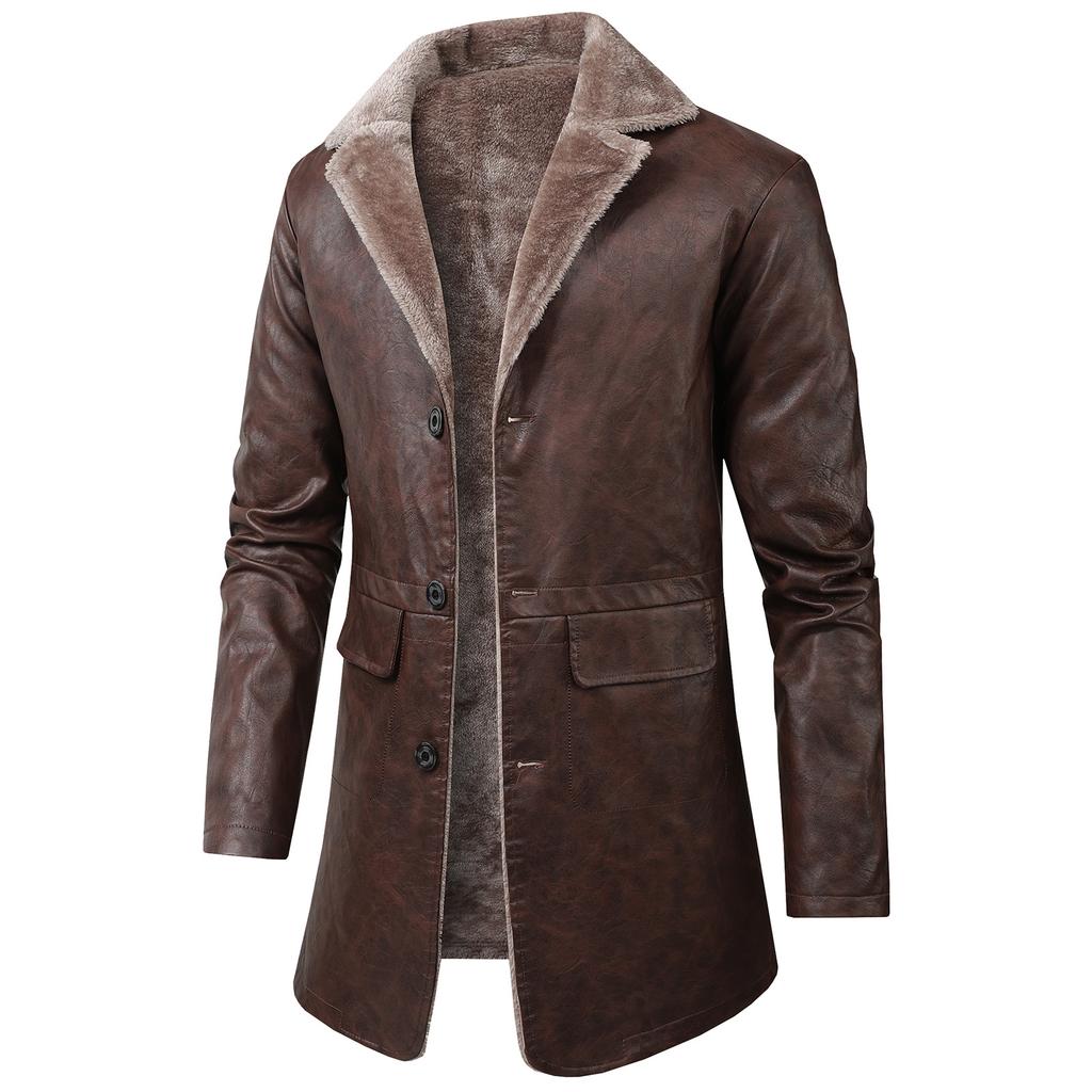 Мужская кожаная куртка средней длины для людей среднего и молодого возраста на осень и зиму, деловой костюм с плюшевым лацканом, плюшевая куртка для мужчин — купить товар онлайн с бесплатной доставкой по всему миру!