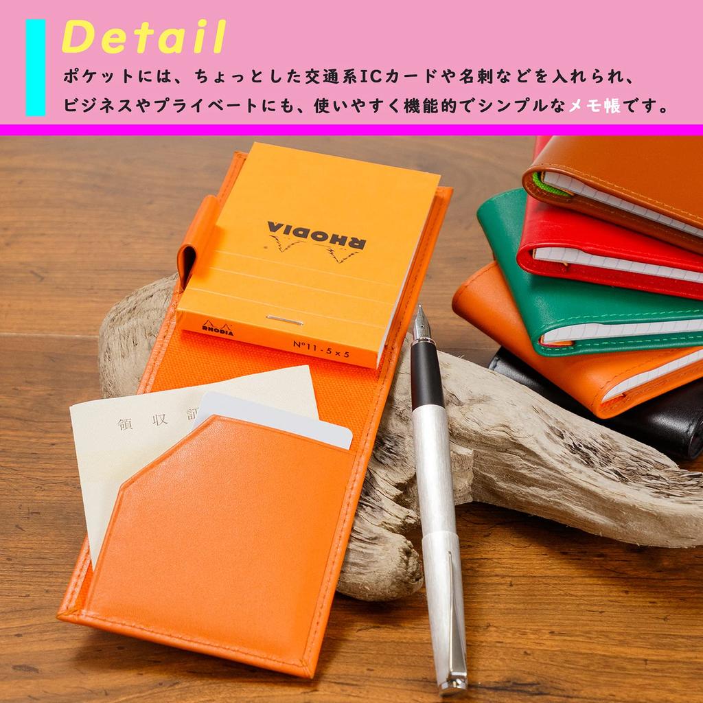 ■Specifications■ 1 card pocket, 1 pen holder, 1 inner notebook pocket [Accessories] BLOC RHODIA NO.11 (cf11200) x 1 [Colors] Brown, Red, Orange, Green, Black *Pen holder (Improved: Improved to accommodate pens with a shaft diameter of up to approximately 15mm)