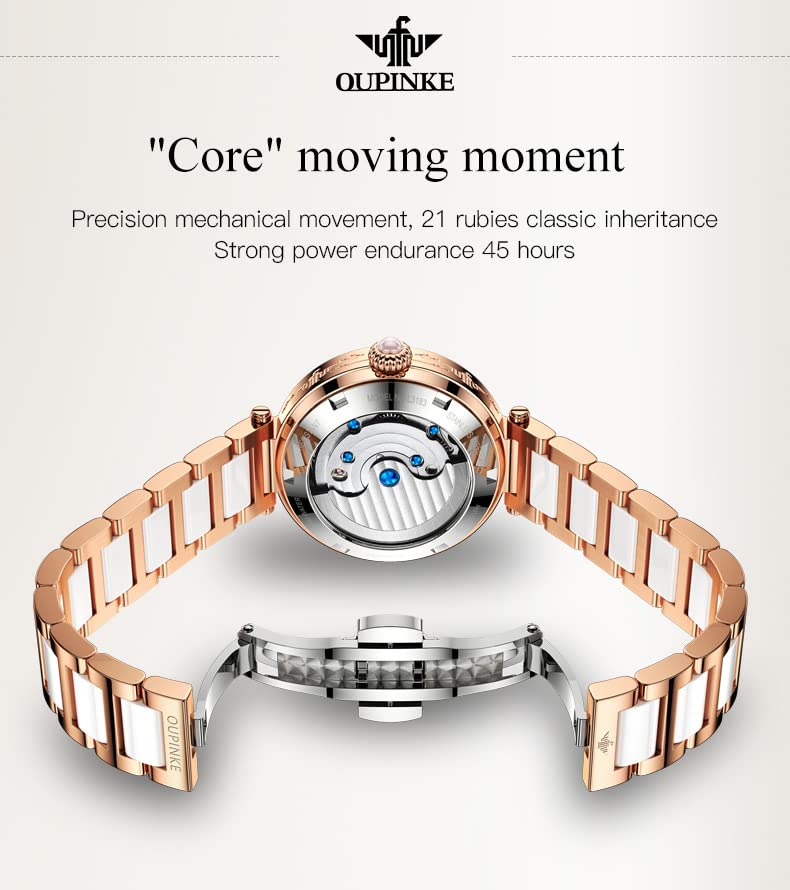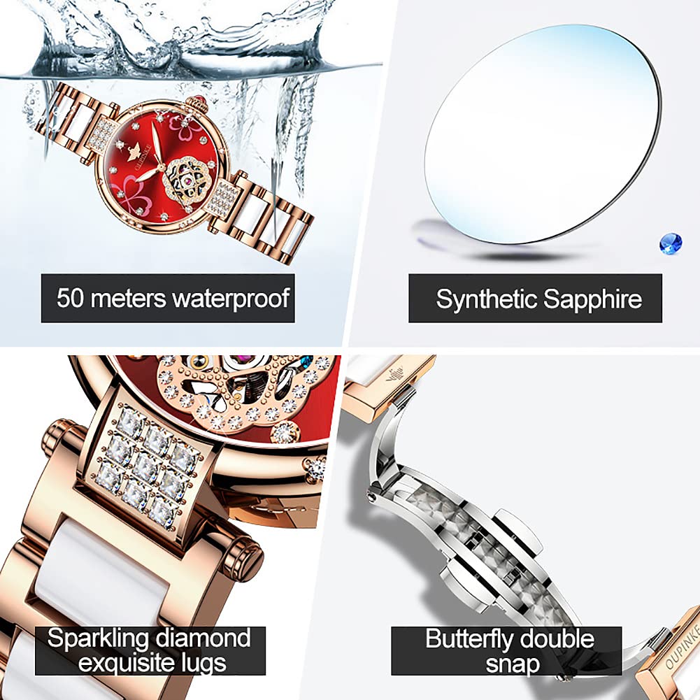 Женские автоматические механические часы OUPINKE с японским механизмом, керамическим ремешком, из высококачественной нержавеющей стали, водонепроницаемость 5 АТМ, красные