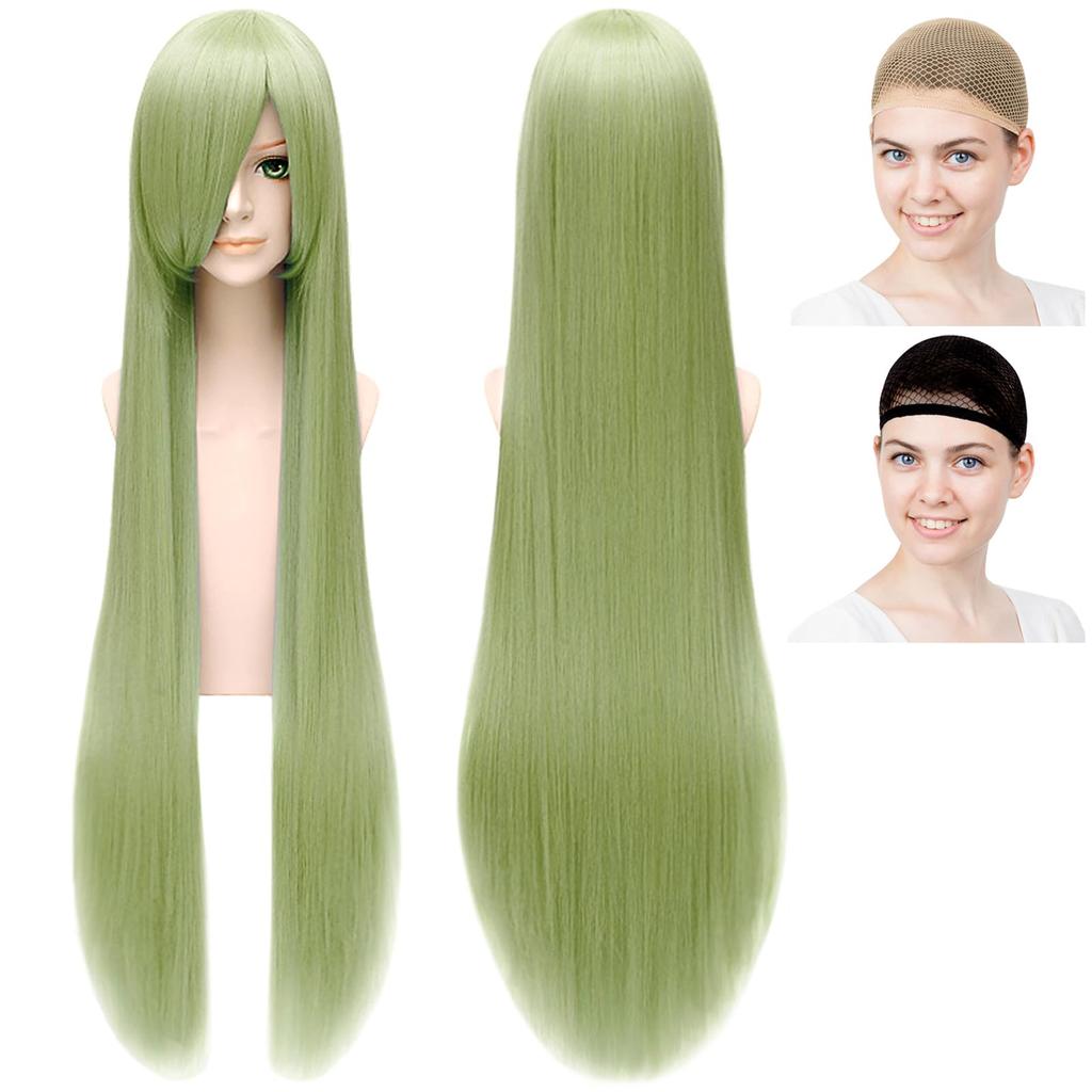 [Парик, который преобразит вас] Этот косплей-парик отличается изысканным дизайном и выразительным, привлекательным, длинным светло-мохово-зеленым цветом. (тусклый, бледно-желто-зеленый) волосы, состоящие из смеси разных оттенков. Его можно стричь и укладывать по вашему желанию, что делает его профессиональным париком, простым в использовании даже для новичков.. Он измеряет примерно 100 см от макушки до кончиков волос.