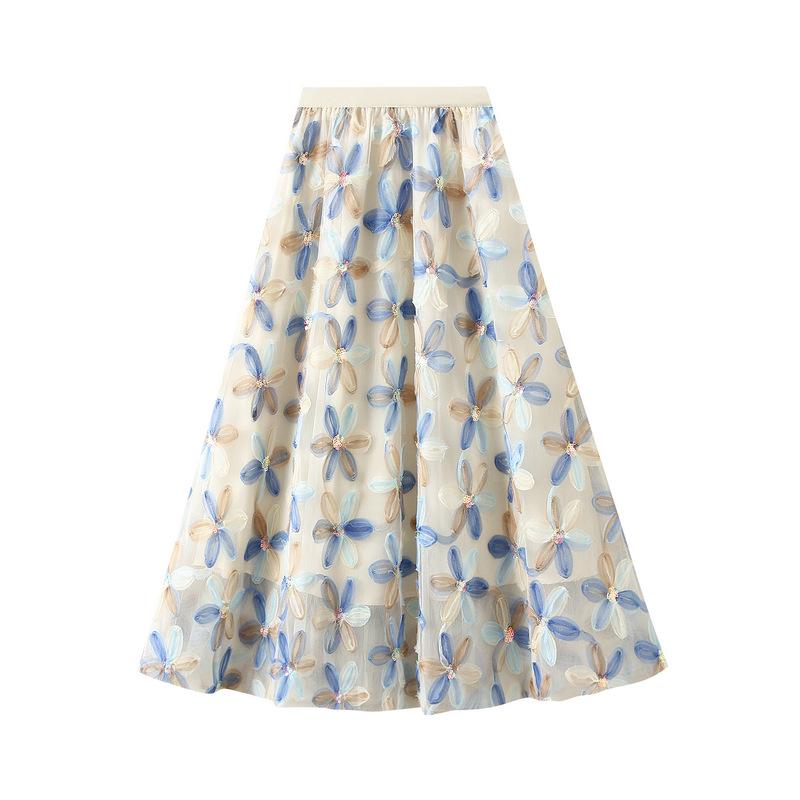 Весна 2025 Юбка А-силуэта из тюля с пайетками и феей-цветком - Длинная миди-юбка, скрывающая бедра