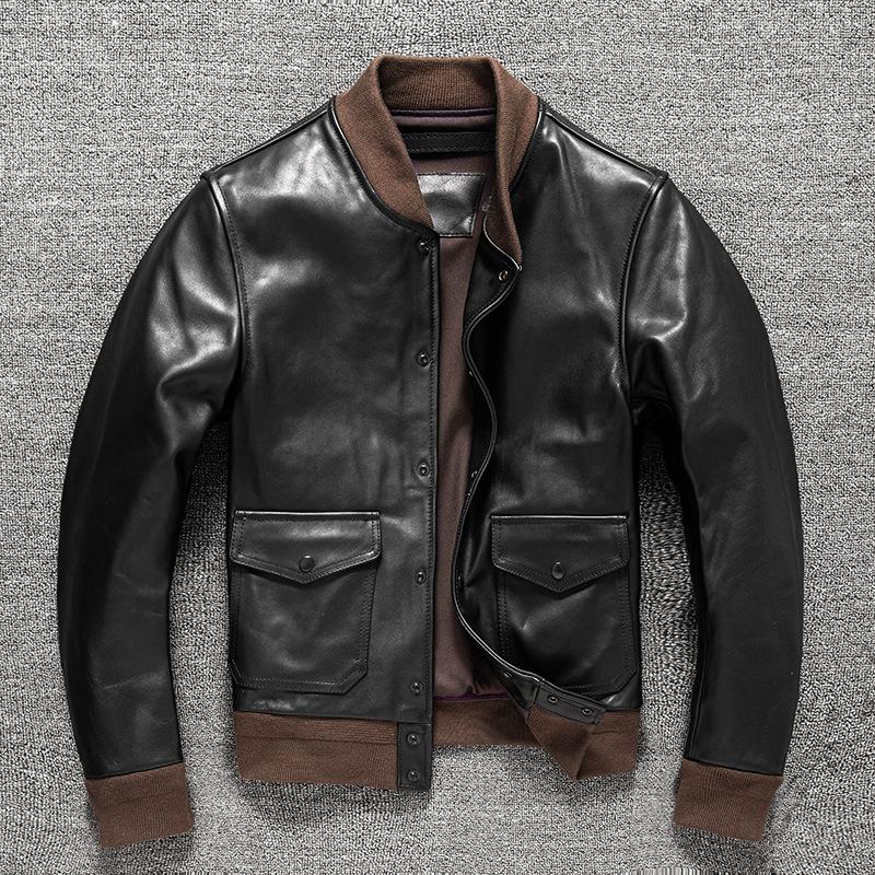 Куртка из натуральной кожи для мужчин A1 Короткая куртка для бейсбольной формы Повседневная осенне-зимняя куртка — купить товар онлайн с бесплатной доставкой по всему миру!