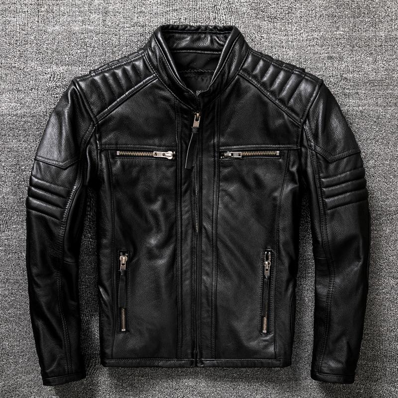 Мужская модная приталенная кожаная куртка Куртка для велоспорта Чистая кожа коровьей шкуры высшего слоя Куртка из натуральной кожи Мужская модная приталенная кожаная куртка Куртка для велоспорта — купить товар онлайн с бесплатной доставкой по всему миру!