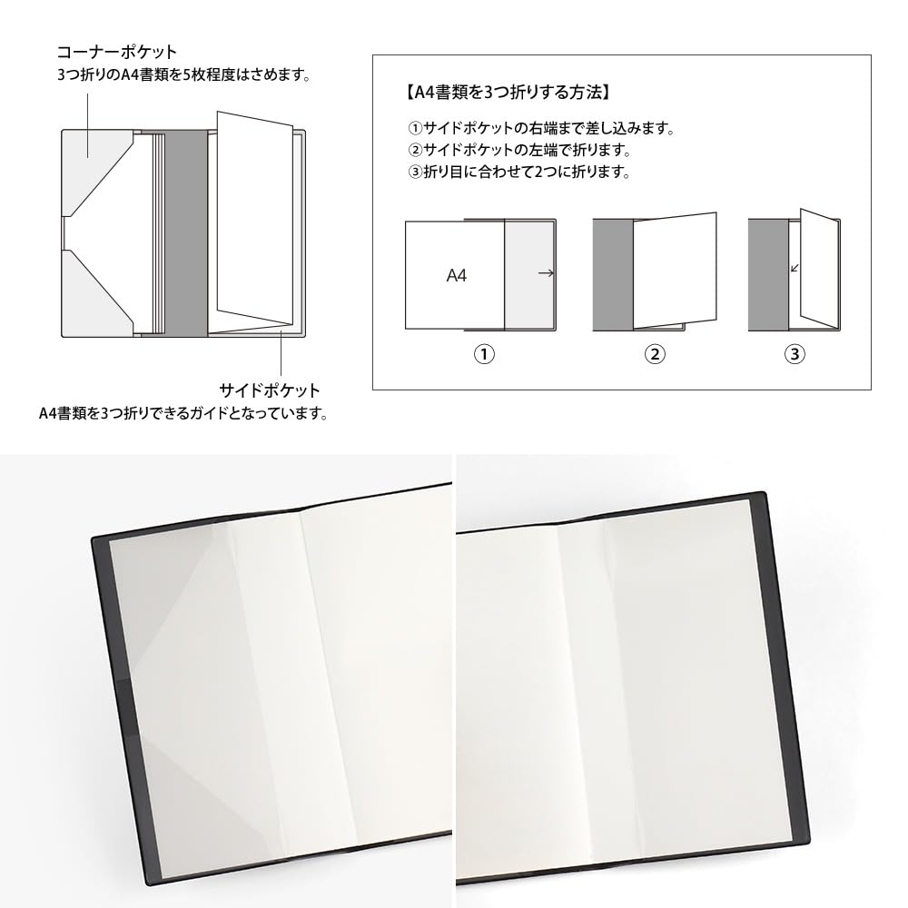 Он оснащен угловыми карманами, в которые помещаются документы формата А4, сложенные втрое, а также боковым карманом с направляющей, позволяющей аккуратно сложить документы формата А4 втрое.