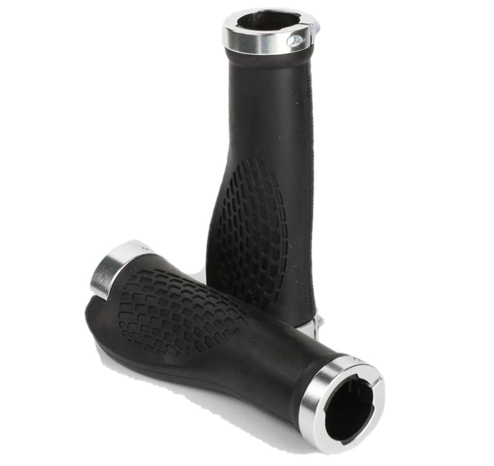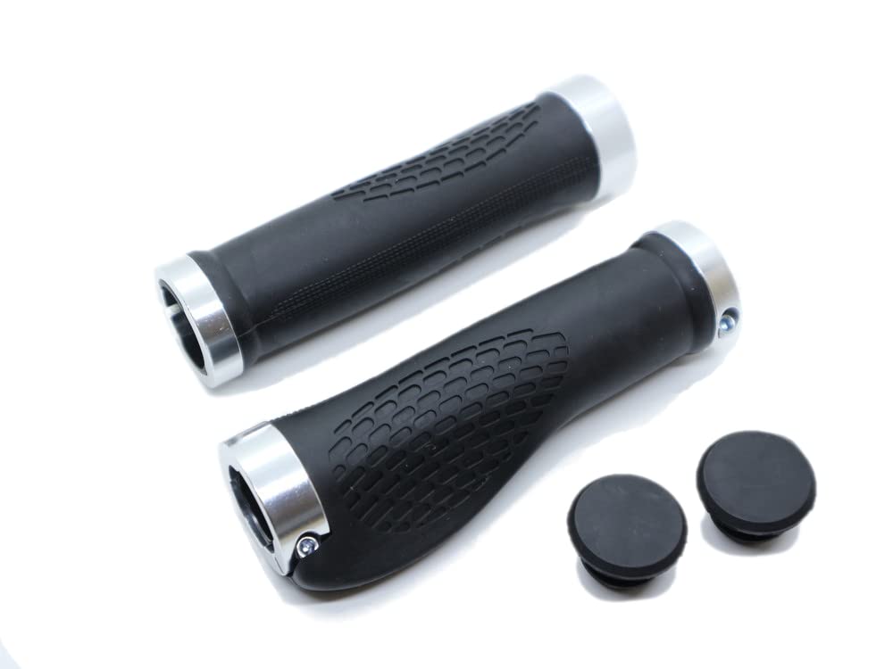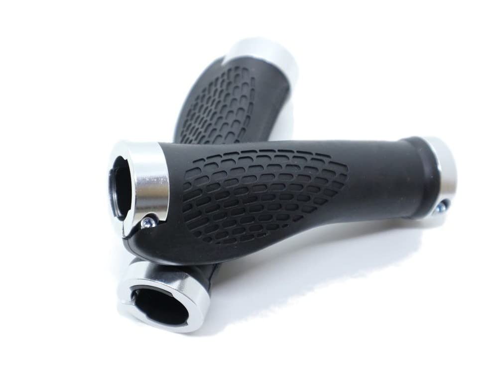 Beatus Ergonomic Handlebar Grips for Mountain Bikes, Left and Right Set, Rubber Grips, Type A (Silver)