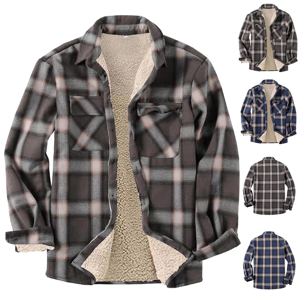 Мужская плюшевая повседневная модная клетчатая рубашка свободного кроя с лацканами и длинными рукавами — купить товар онлайн с бесплатной доставкой по всему миру!