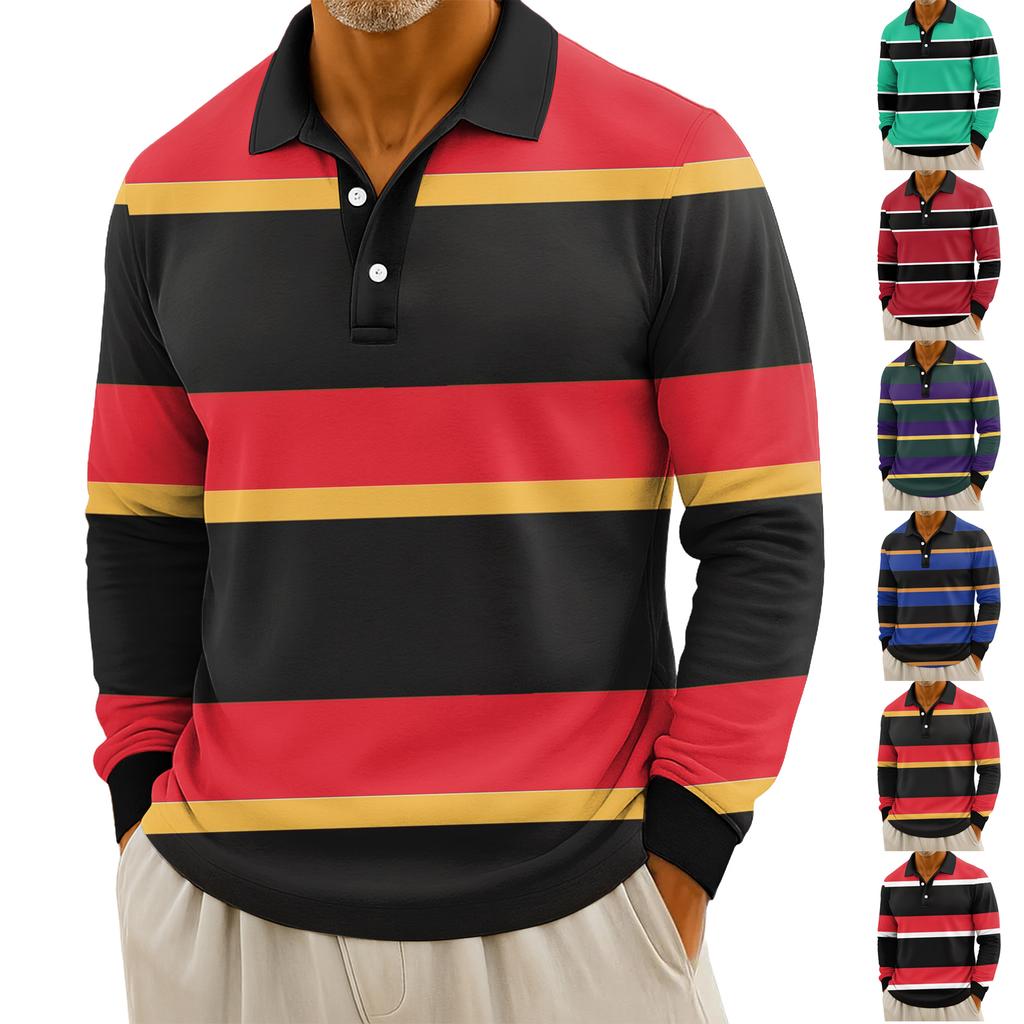 Мужские повседневные топы с длинными рукавами на пуговицах с полосатым принтом