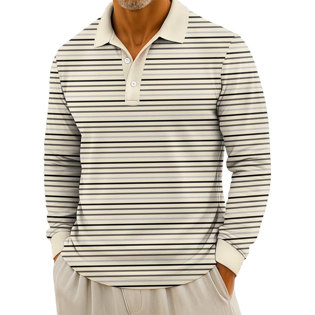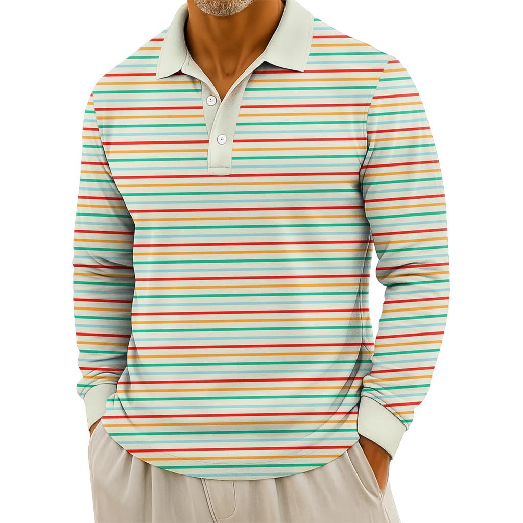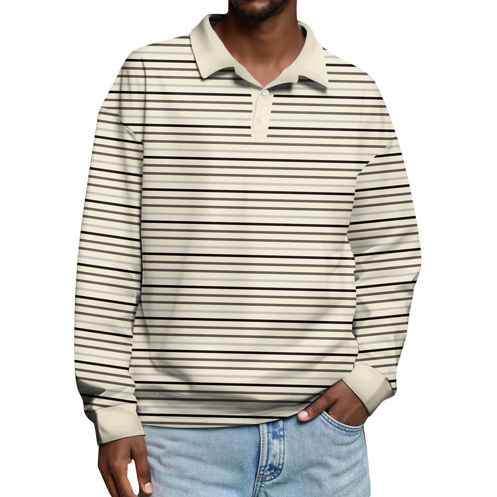 Мужские повседневные топы с длинными рукавами на пуговицах с полосатым принтом