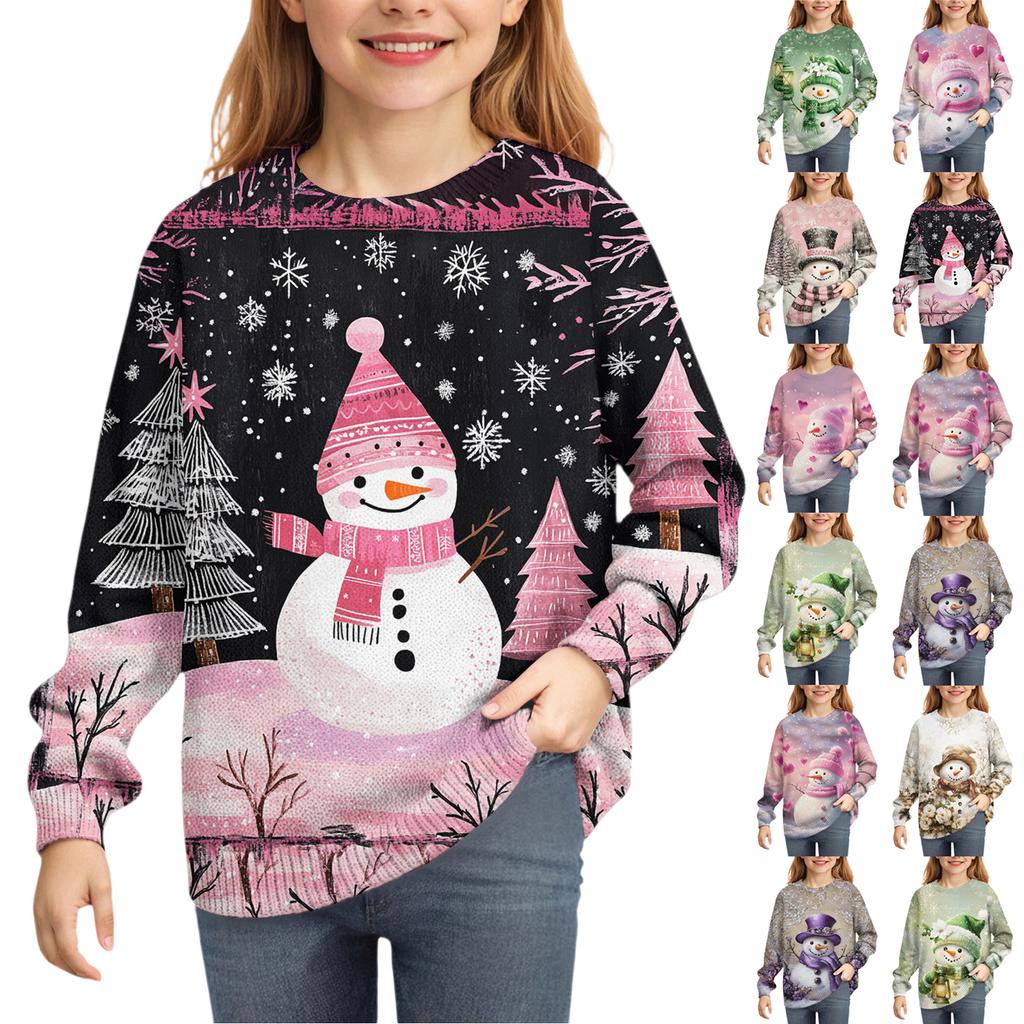 Рождественские свитшоты для детей мальчиков и девочек вязаный свитер милая рубашка осенний пуловер с круглым вырезом топы