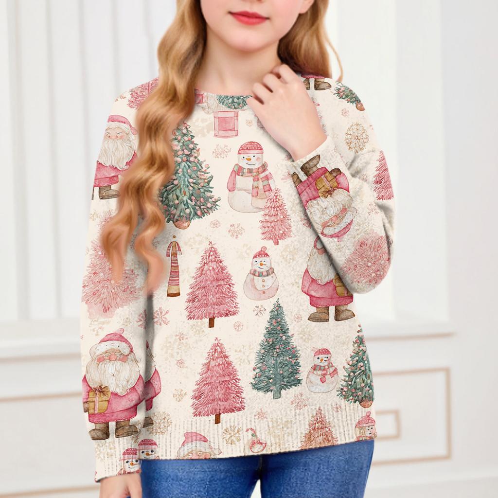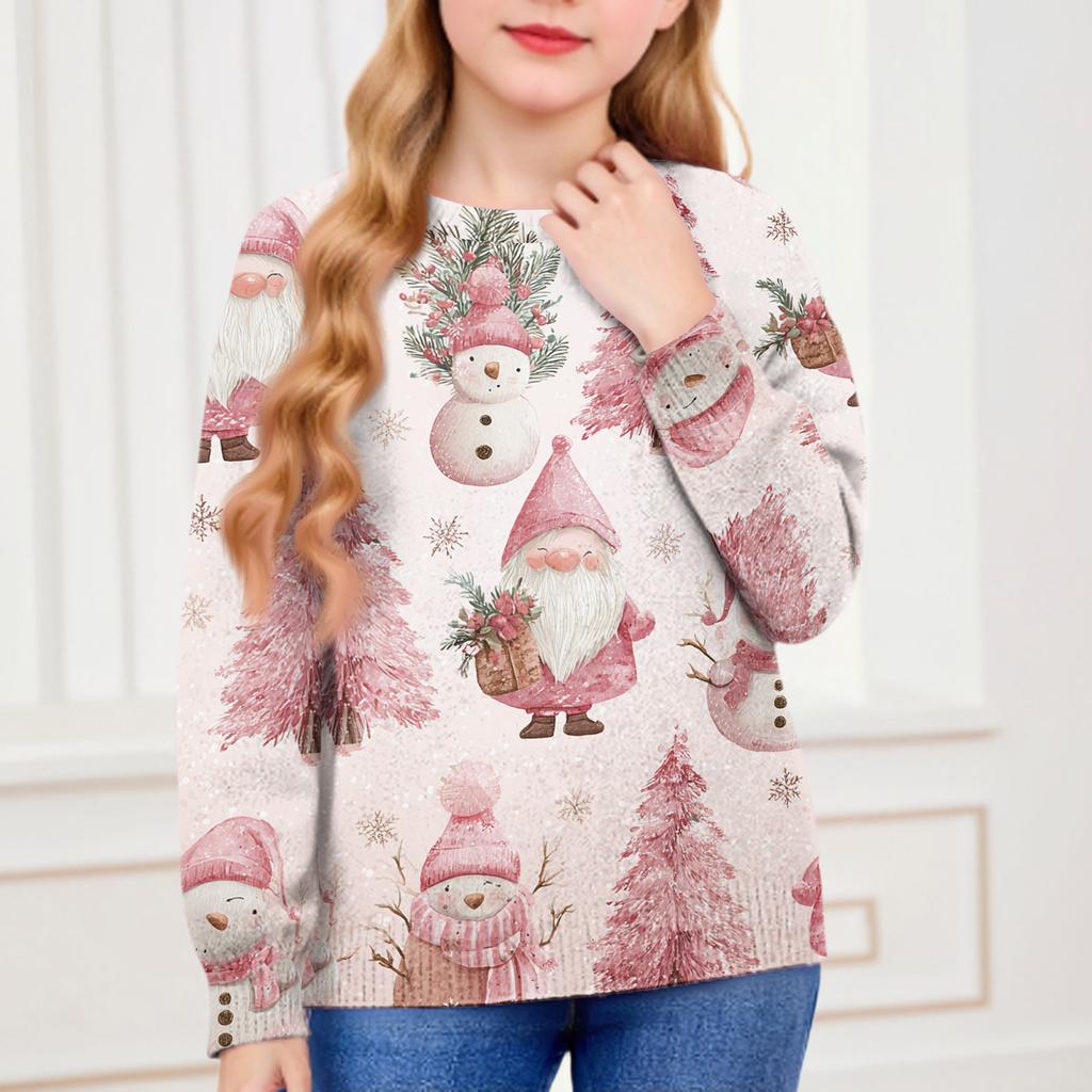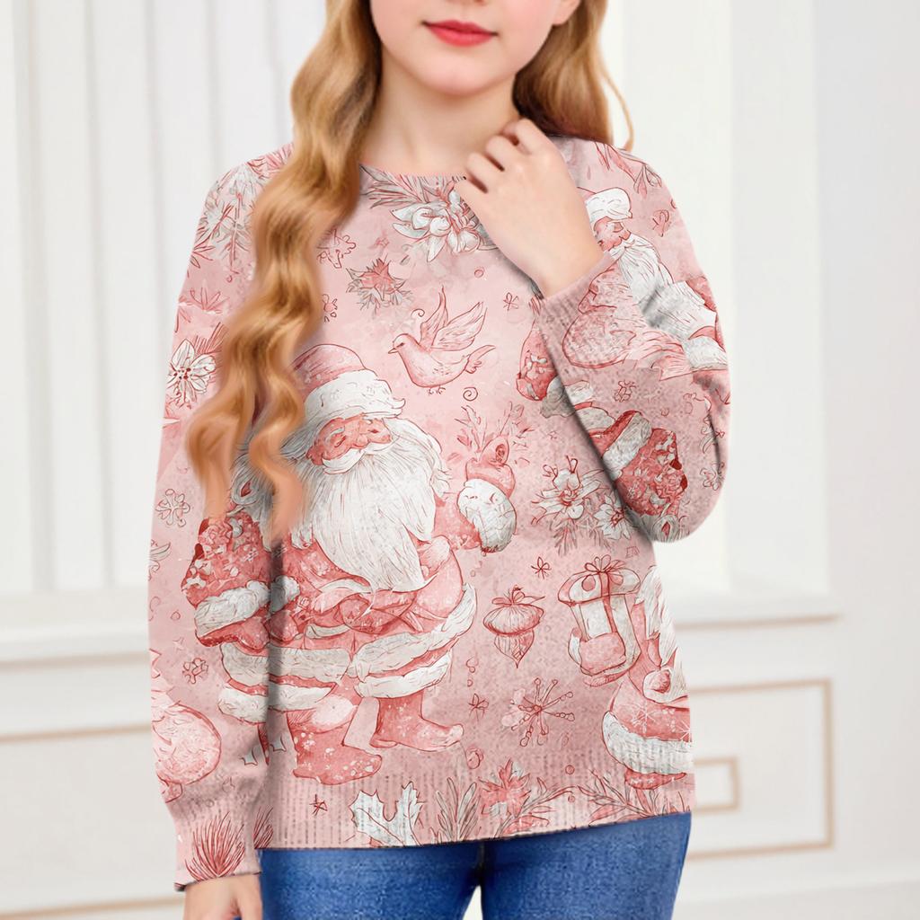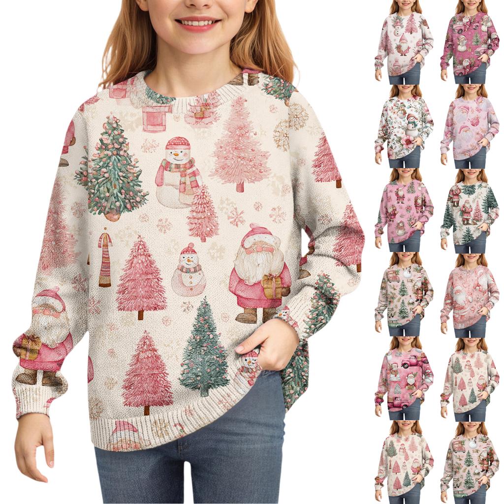Рождественские свитшоты для детей мальчиков и девочек вязаный свитер милая рубашка осенний пуловер с круглым вырезом топы
