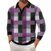 Мужская повседневная модная трикотажная рубашка с длинным рукавом и принтом на лацкане