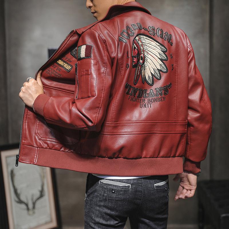 Мужская куртка из искусственной кожи для мужчин с лацканами, вышитый мотоциклетный костюм плюс бархатная мужская повседневная кожаная куртка