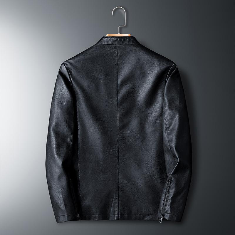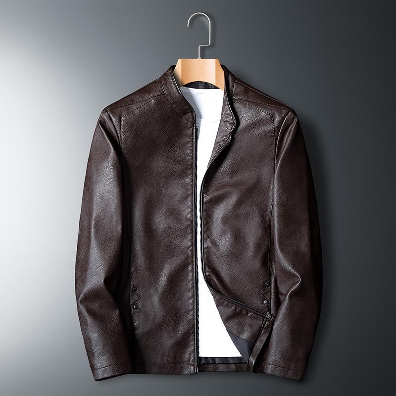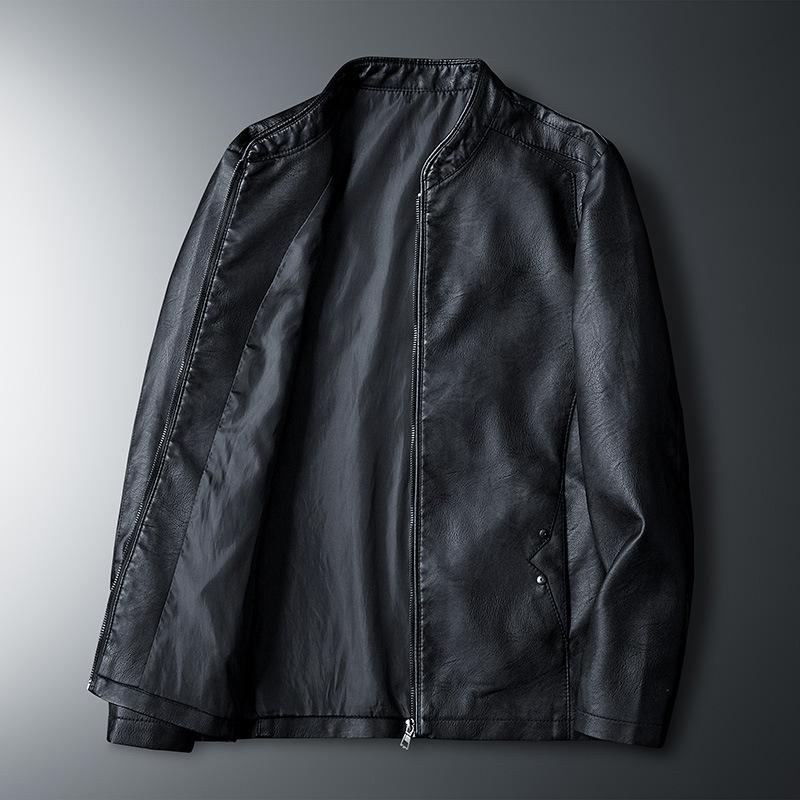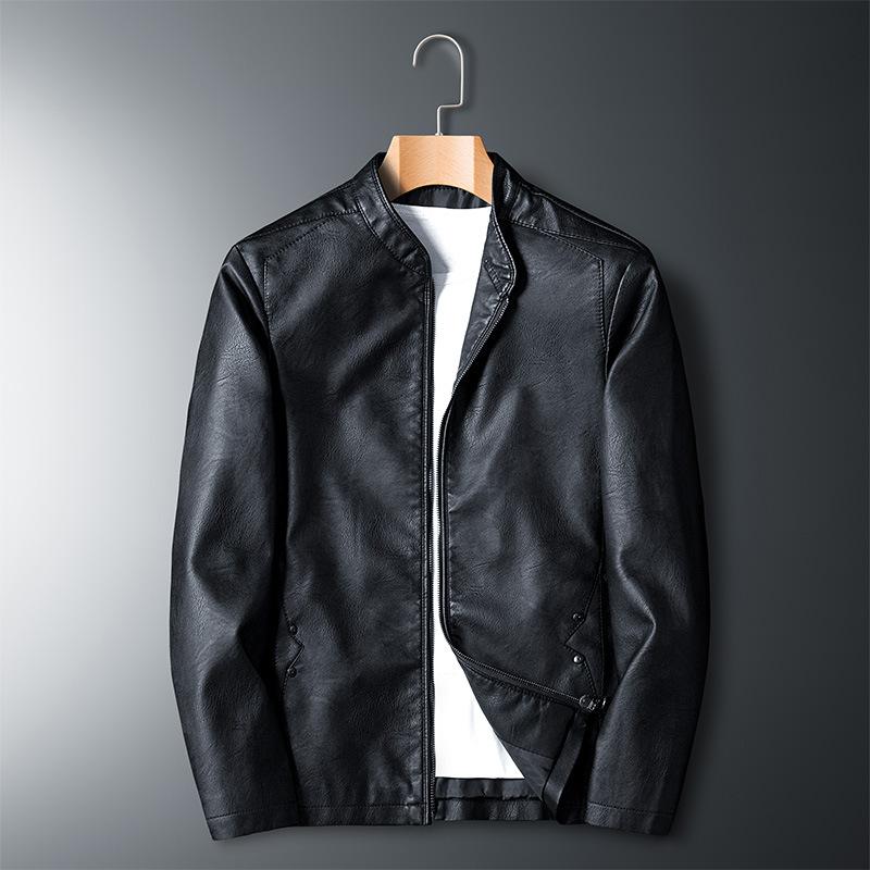 Мужская мотоциклетная куртка из искусственной кожи большого размера, весенняя новая тонкая куртка, однотонная куртка со стойкой, приталенная кожаная куртка