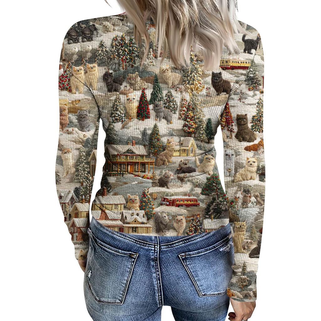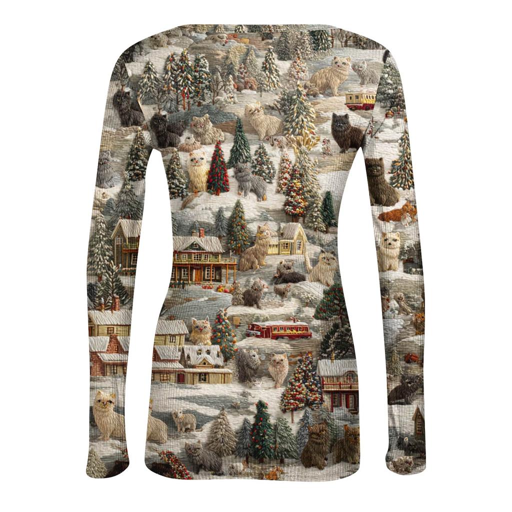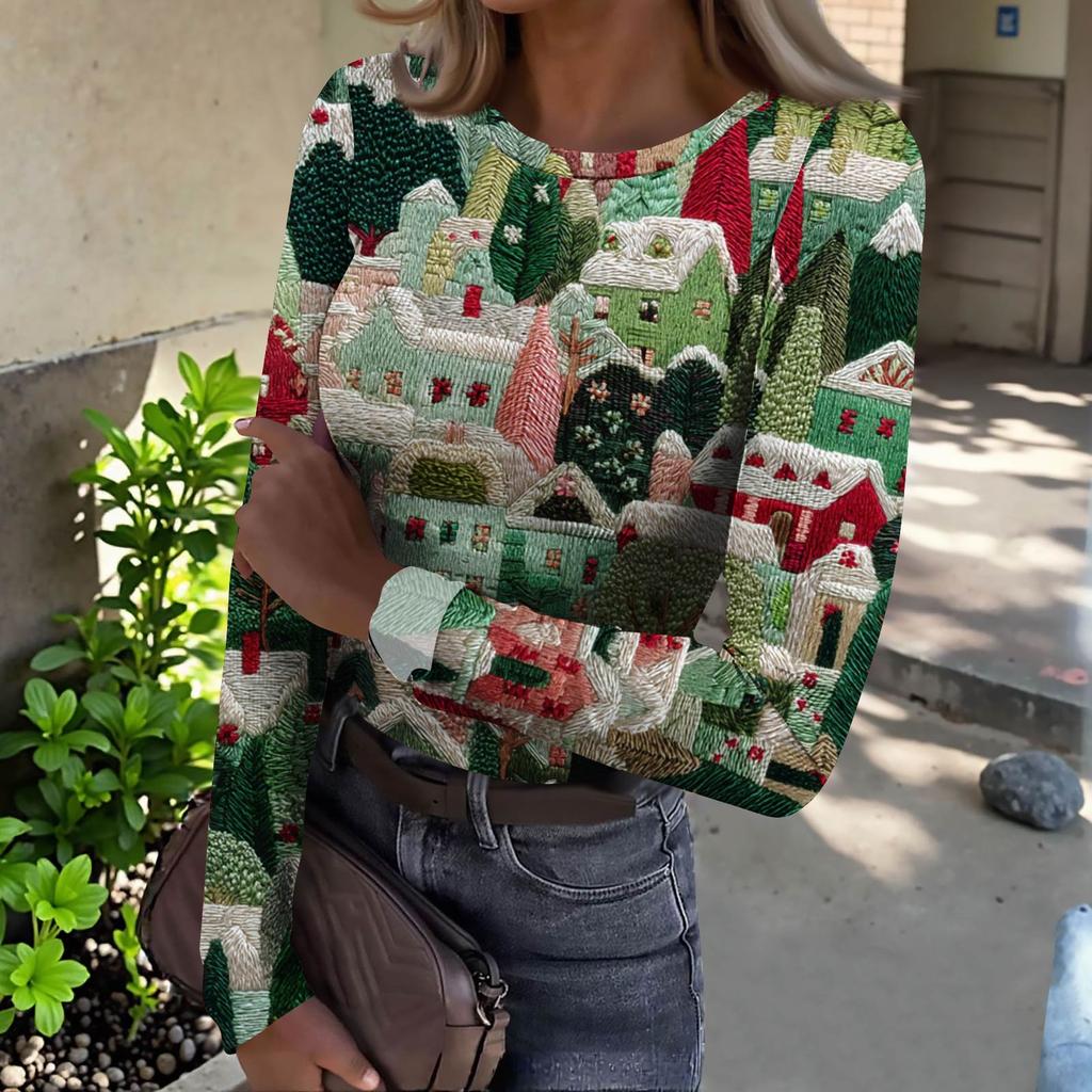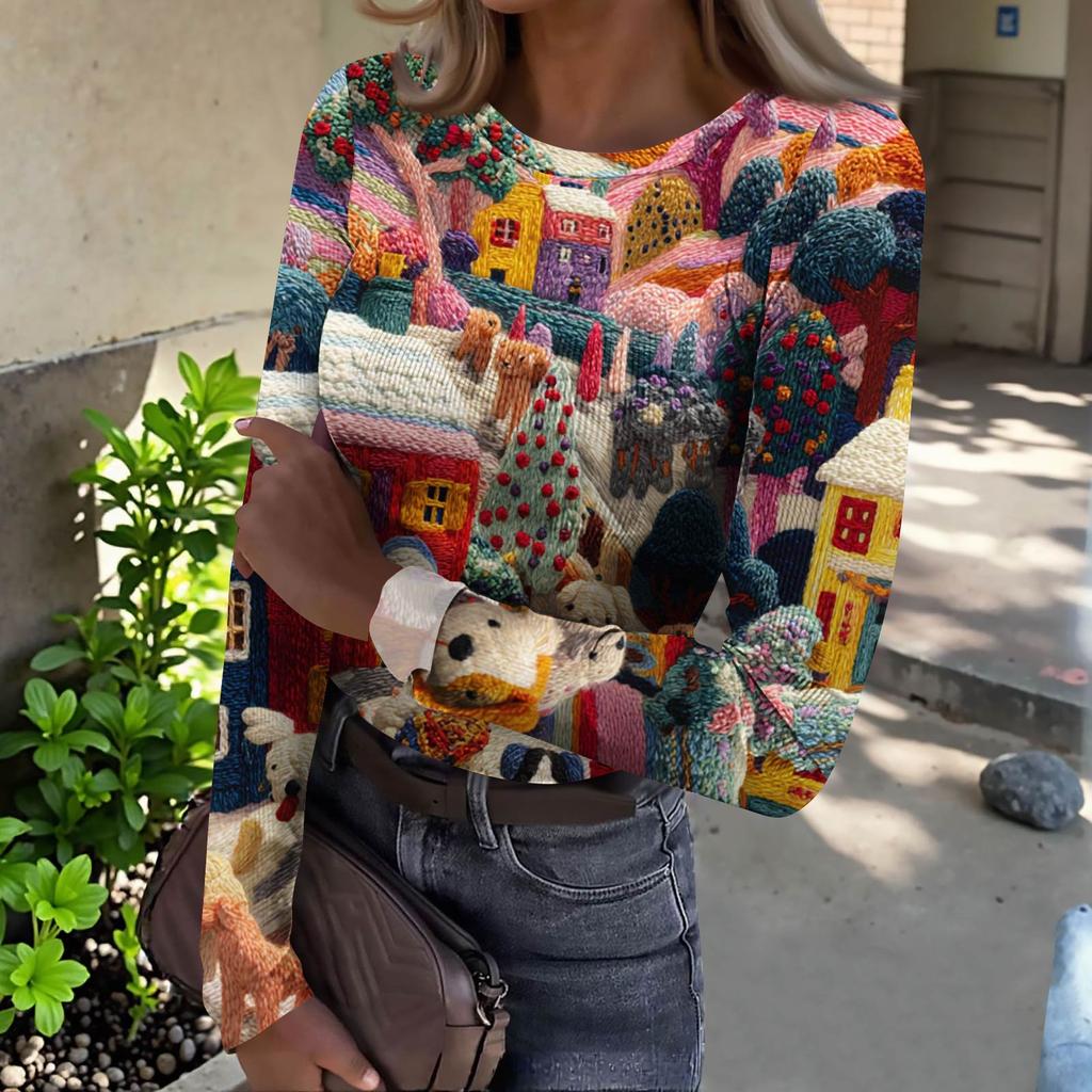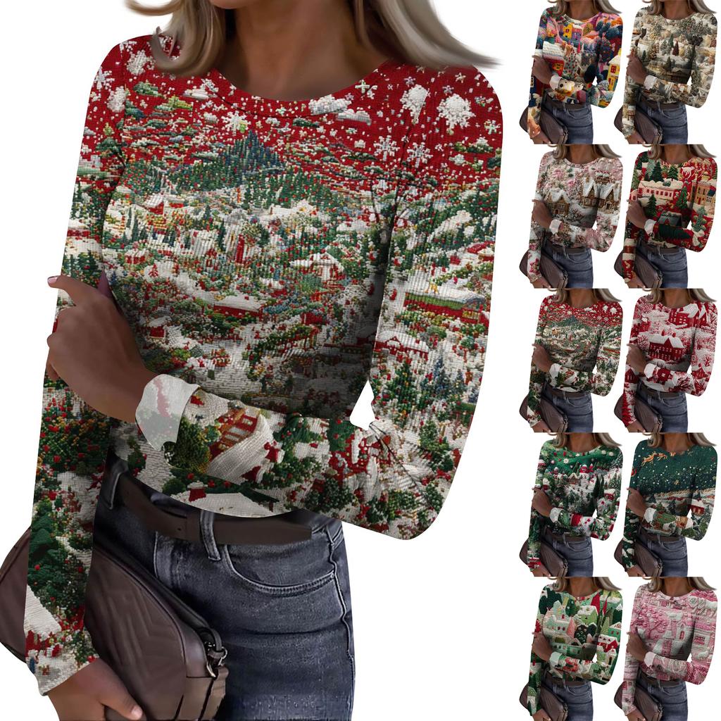Женская футболка с облегающим низом, модная повседневная с градиентным принтом, пуловер с круглым вырезом и длинными рукавами