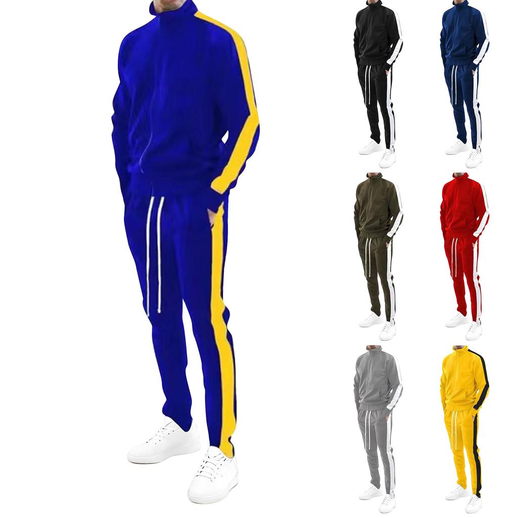 Мужской водолазка Повседневная спортивная одежда Модный костюм Куртка на молнии Брюки Костюм