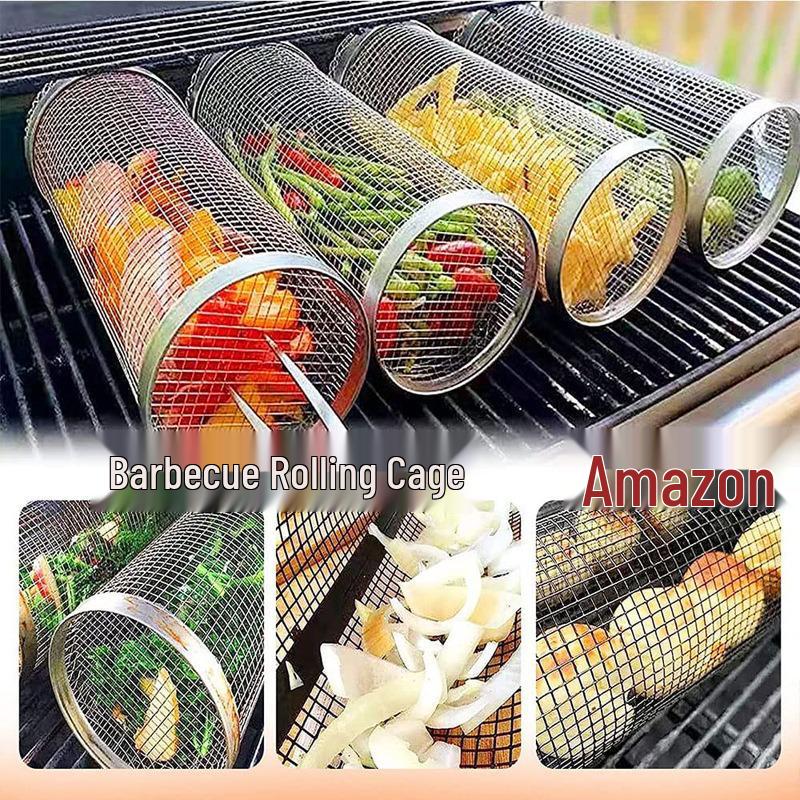 Клетка для барбекю из нержавеющей стали 304, цилиндрическая сетчатая корзина для гриля-коптильни - В наличии