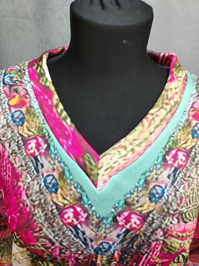 На картинке кофта очень красивая, так что заказали, несмотря на состав из полистера. Вроде бы вязаная, с рельефными узорами, яркая. В реальности совершенно гладкая, откровенно стеклянная синтетика с грубо нарисованными розочками. Внизу резинка из той же ткани заужена на 44 размер. Внутри тонкий флис, т.е. утепленная. Носить можно. В чем-то даже красиво. Просто совершенно не то, что в рекламе, и у покупателей, конечно, шок. Мы бы не взяли, но теперь делать нечего, используем как-нибудь. Лучше ближе к правде показать рекламу, бесконечно хитрить не получится . Если бы не это, можно было бы четыре с минусом поставить. Но только цена 1500 чересчур завышена