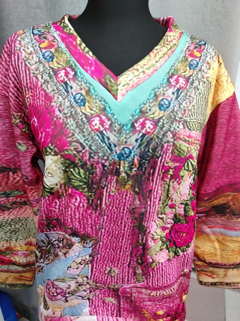 Даже одной звезды жалко, ставлю только за доставку! Не ведитесь на картинку, только на отзывы! Просто нет слов! Отвратительная тряпка, фотопечать размытая, бледная, вообще не понятно, что за цветные разводы! Ей только полы мыть, одеть такой ужас стыдно!!!! Такое барахло на рынке по 300 руб, но не 1450 р(. Не тратьте деньги и нервы!