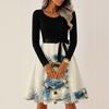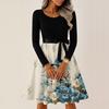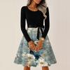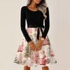 Женские повседневные модные платья с круглым вырезом, длинным рукавом, рождественским принтом, для вечеринки, винтажные длинные платья