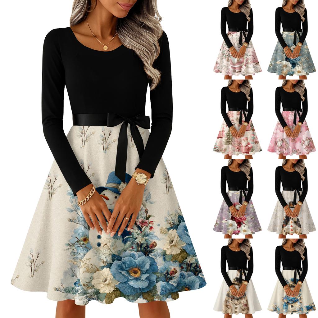 Женские повседневные модные платья с круглым вырезом, длинным рукавом, рождественским принтом, для вечеринки, винтажные длинные платья — купить товар онлайн с бесплатной доставкой по всему миру!