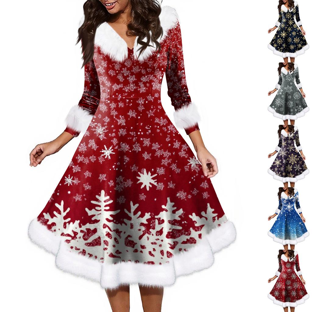 Женское модное повседневное платье с v-образным вырезом и рождественским принтом для вечеринки с длинными рукавами — купить товар онлайн с бесплатной доставкой по всему миру!
