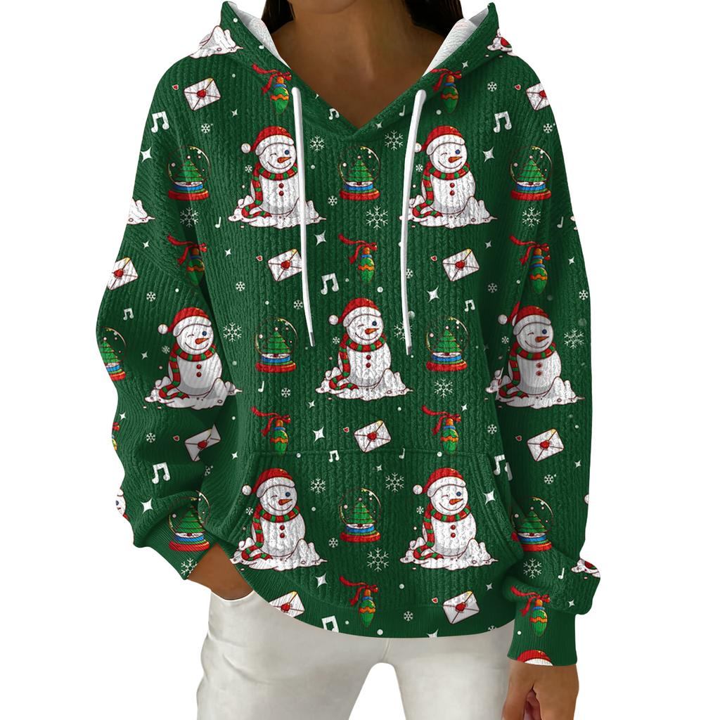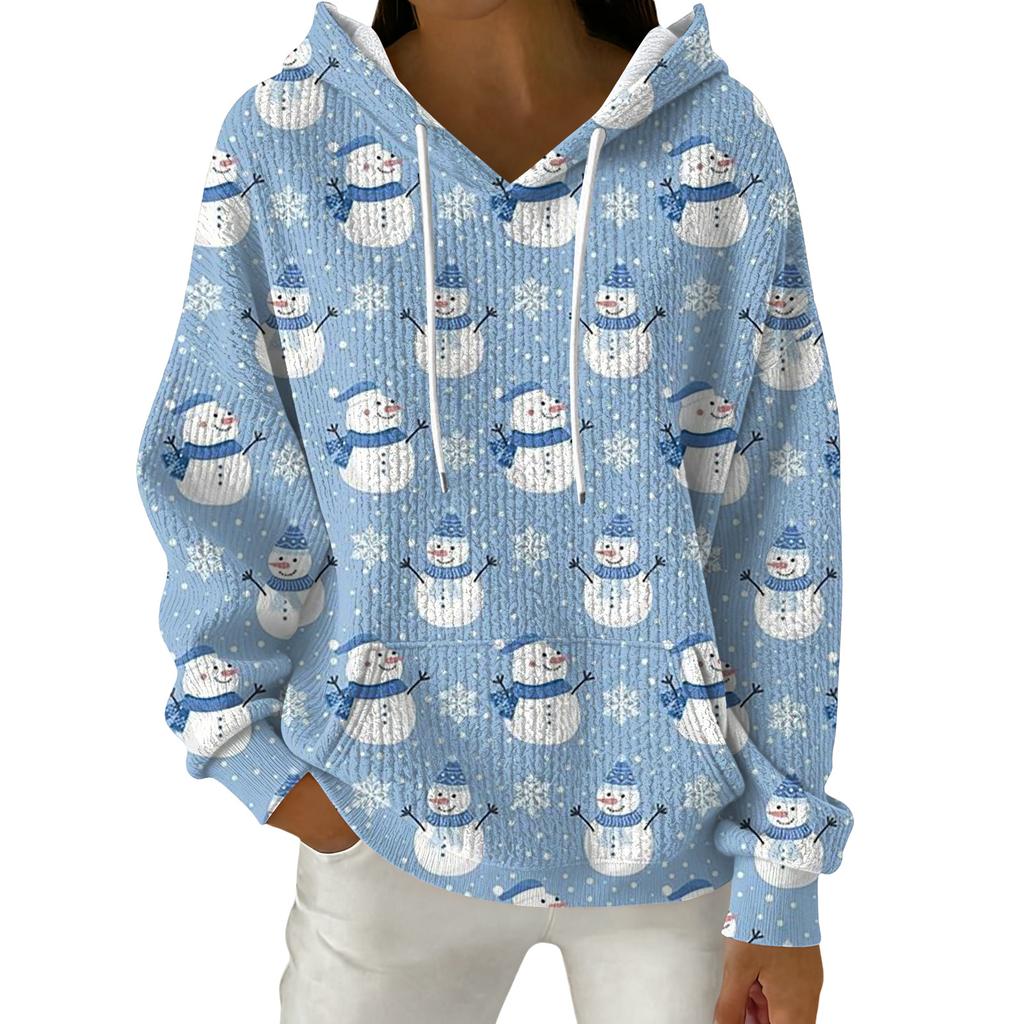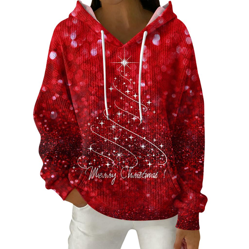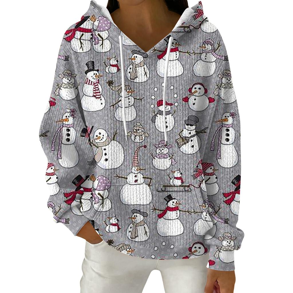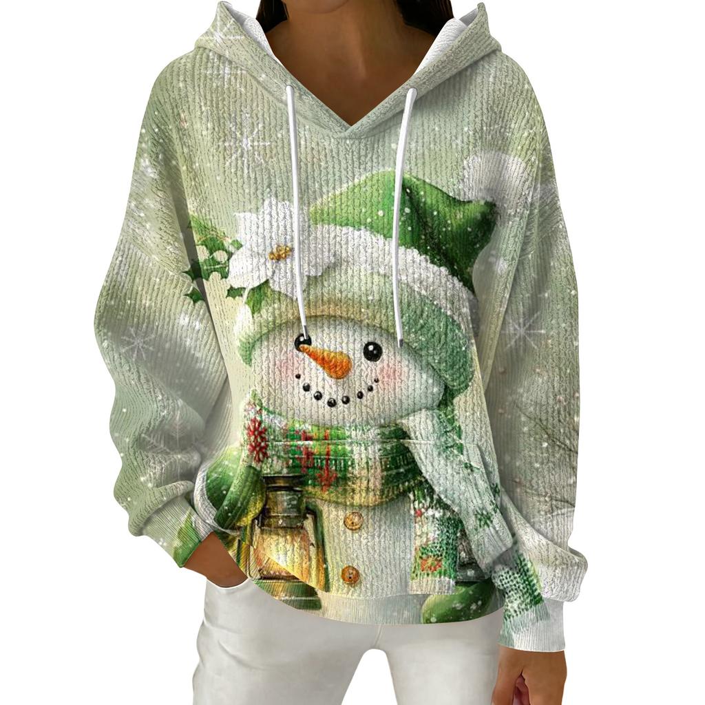 Женский модный повседневный пуловер с рождественским принтом, толстовка с капюшоном и длинными рукавами