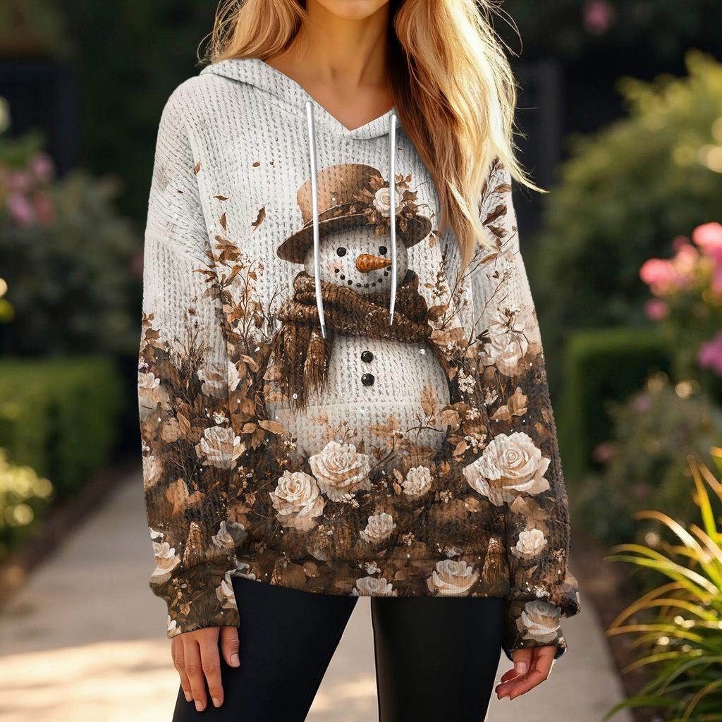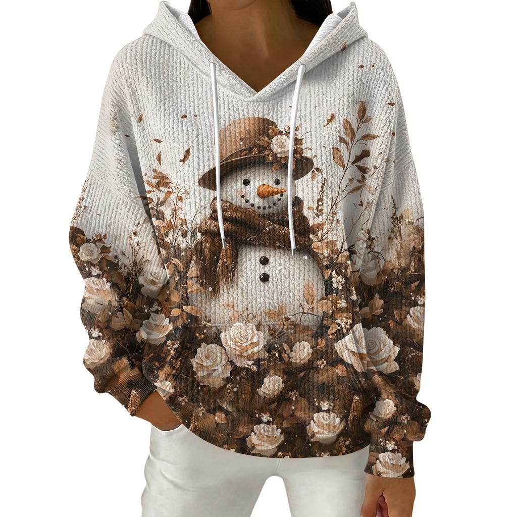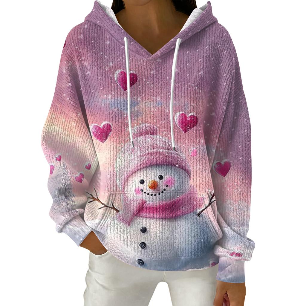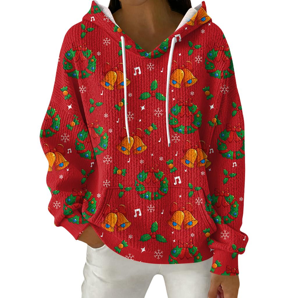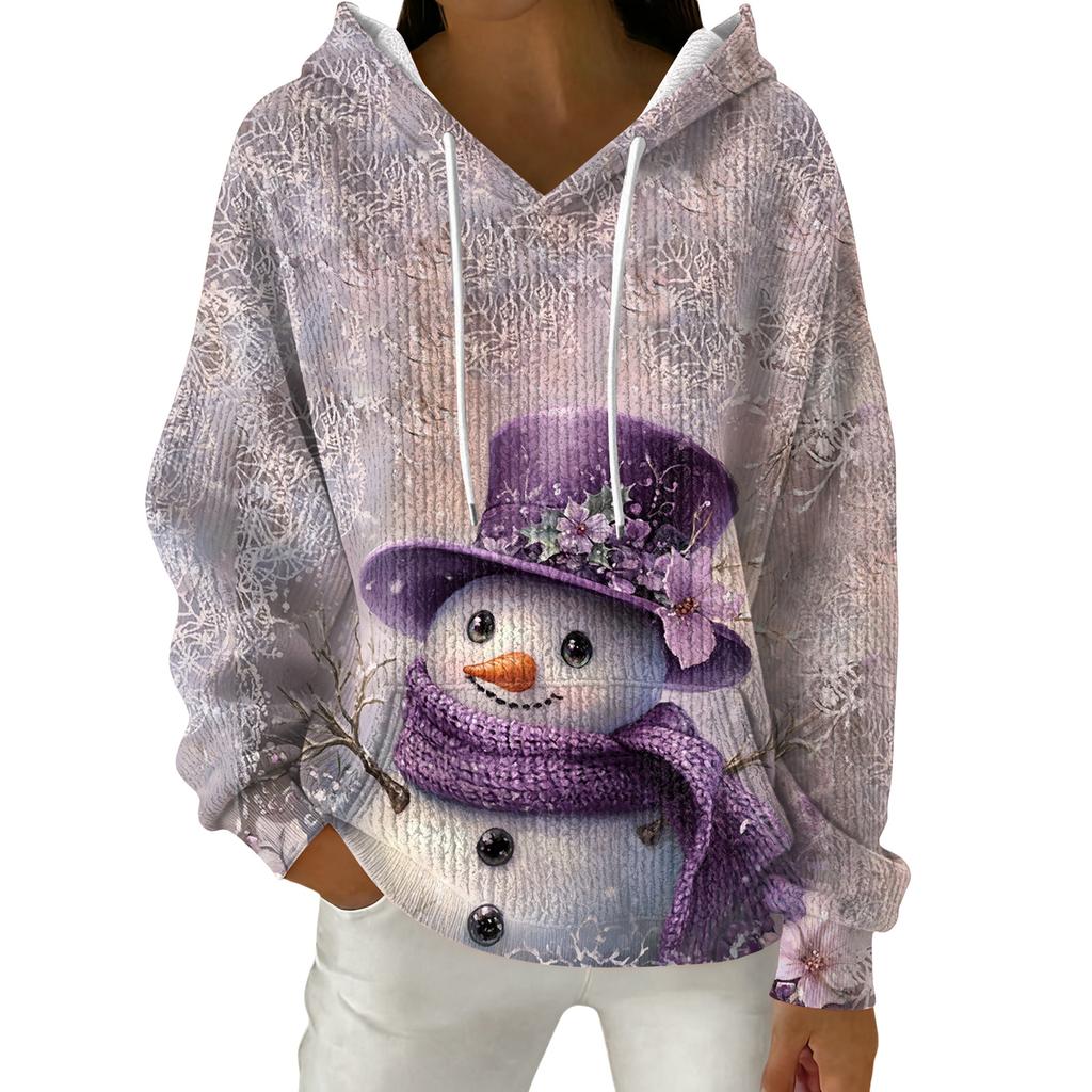 Женский модный повседневный пуловер с рождественским принтом, толстовка с капюшоном и длинными рукавами