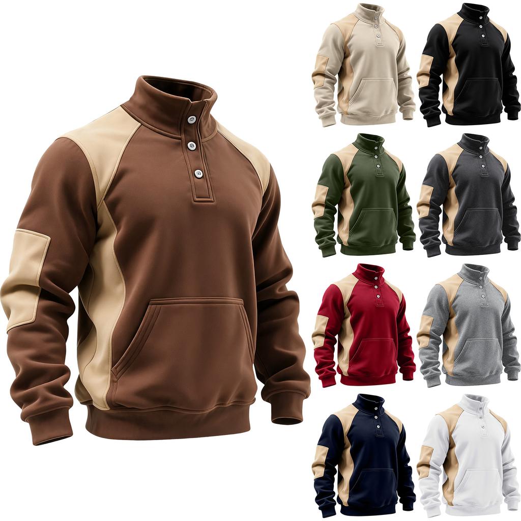 Мужская толстовка худи с цветными блоками, воротником-стойкой и застежкой на пуговицы, спортивная повседневная толстовка большого размера — купить товар онлайн с бесплатной доставкой по всему миру!