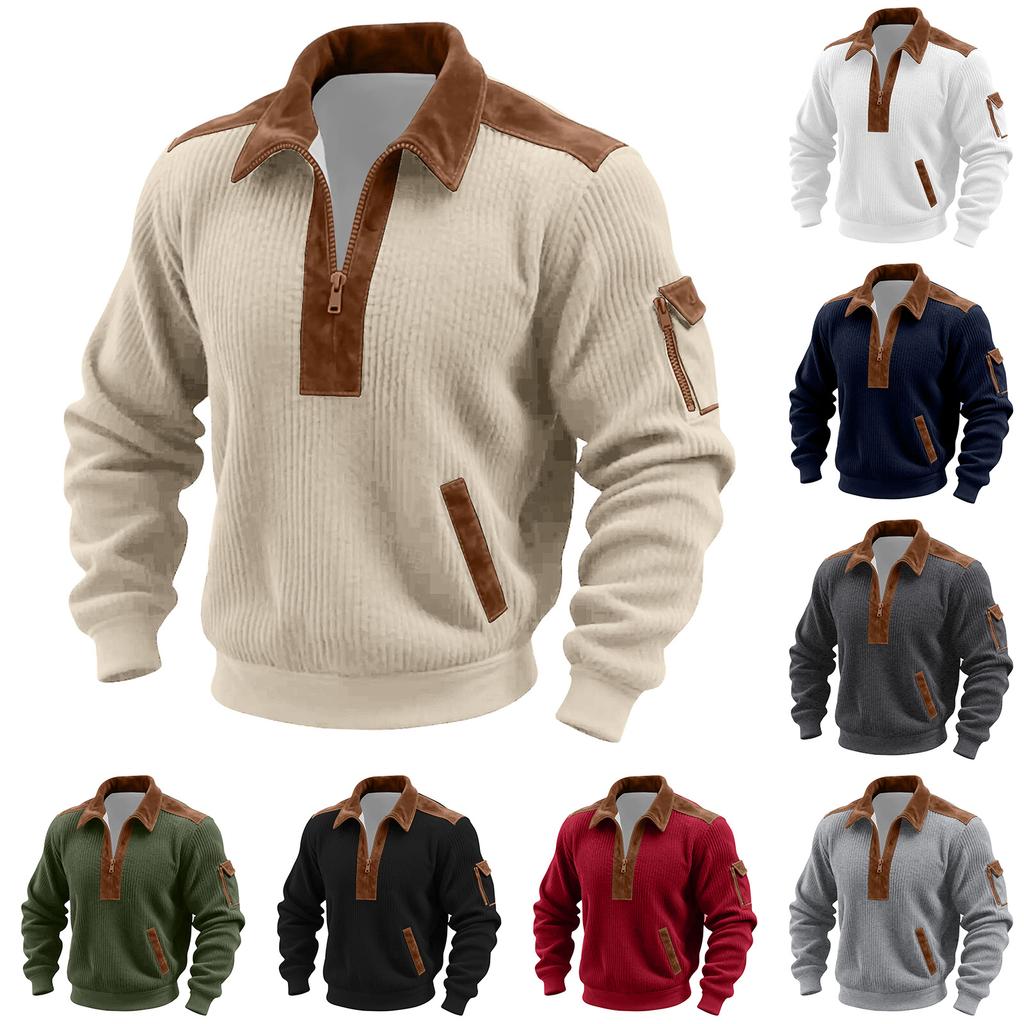 Мужской однотонный вельветовый топ с длинным рукавом и застежкой-молнией на горловине, мужской повседневный топ с лацканами — купить товар онлайн с бесплатной доставкой до всему миру!