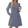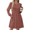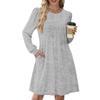 Женское повседневное платье с длинным рукавом, плиссировкой, круглым вырезом, однотонное, с карманами
