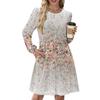 Женское повседневное платье с длинным рукавом, плиссировкой, круглым вырезом, цветочным принтом и карманами