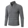 Мужской повседневный однотонный вязаный свитер на полумолнии со стойкой, мужской теплый флисовый вязаный пуловер