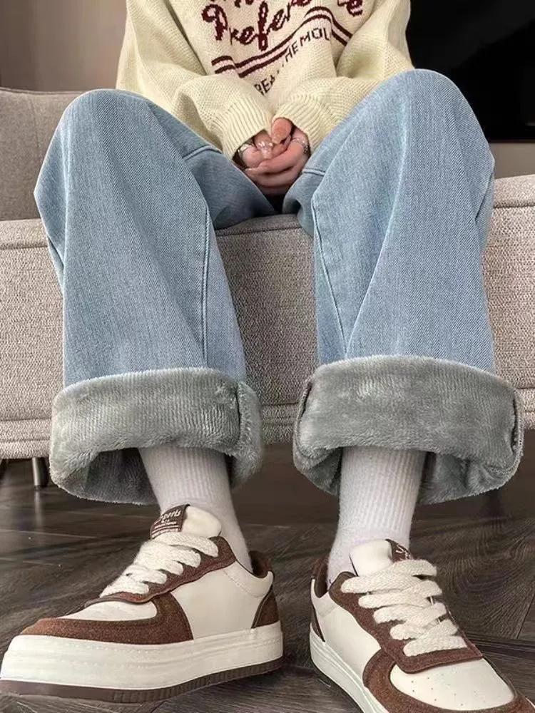 Джинсы на флисе для девочек, для миниатюрных, прямые, свободные, широкие брюки