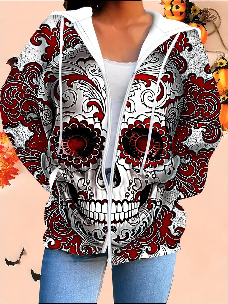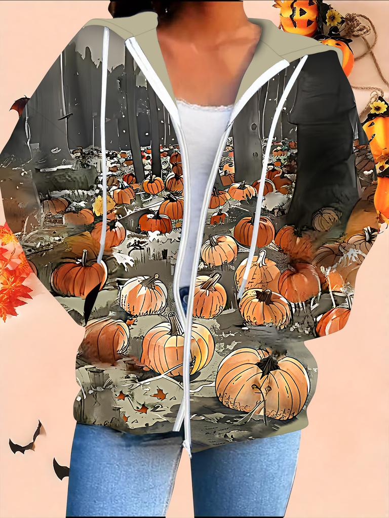 Хэллоуин Кардиган с капюшоном 3D-принт Большой размер Осень Зима Ретро