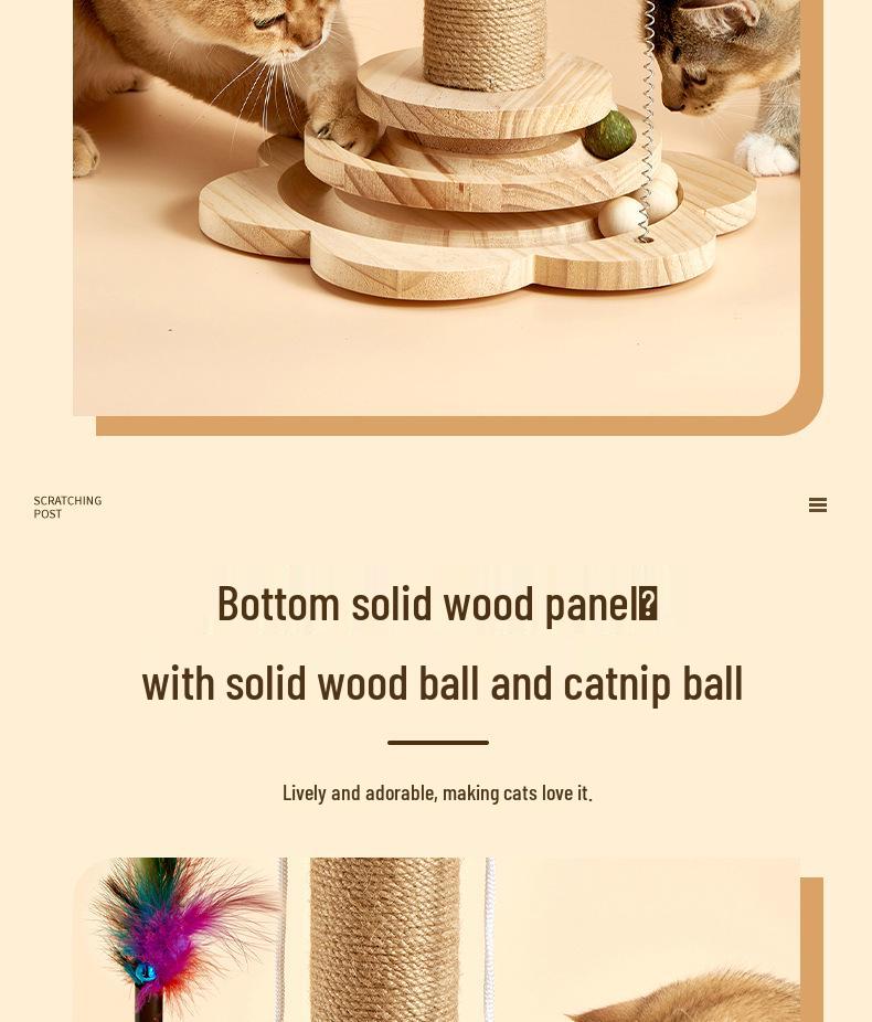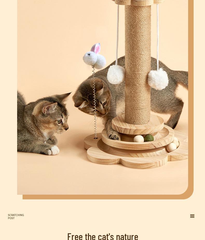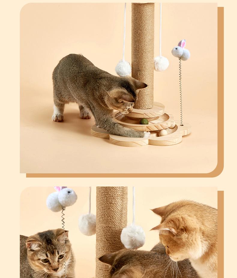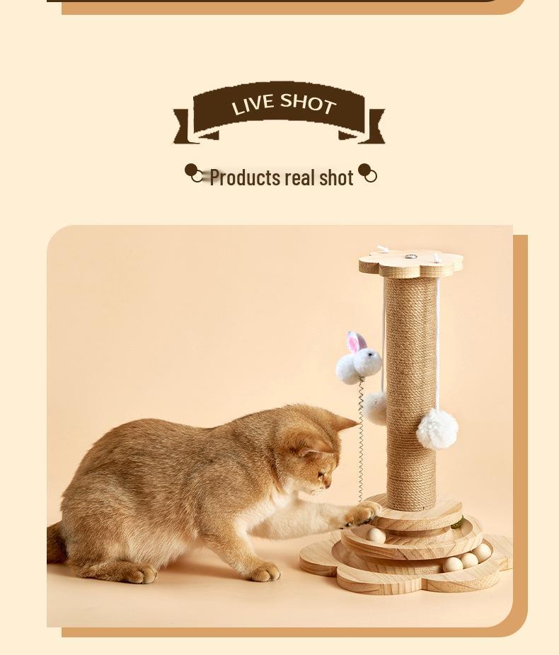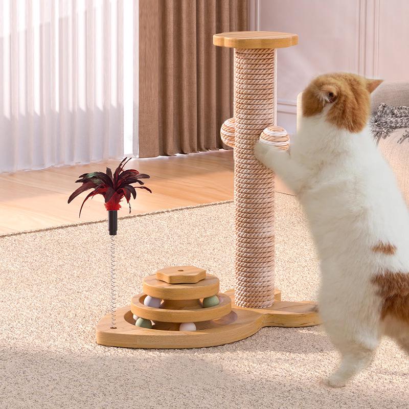 Прочная когтеточка и игрушка для кошек из массива дерева и сизаля - Саморазвлечение и избавление от скуки для кошек
