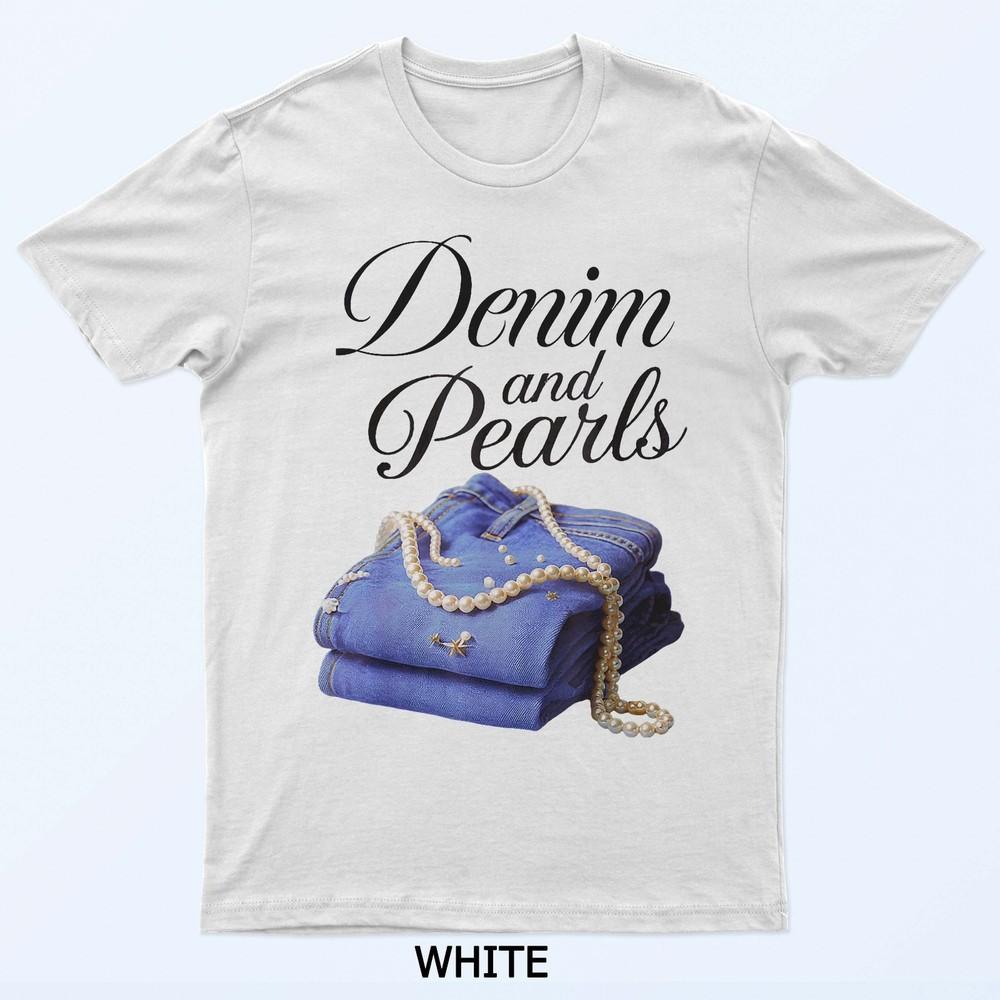 Деним и жемчуг для дам 2025 Джинсы Деним с жемчугом Футболка
