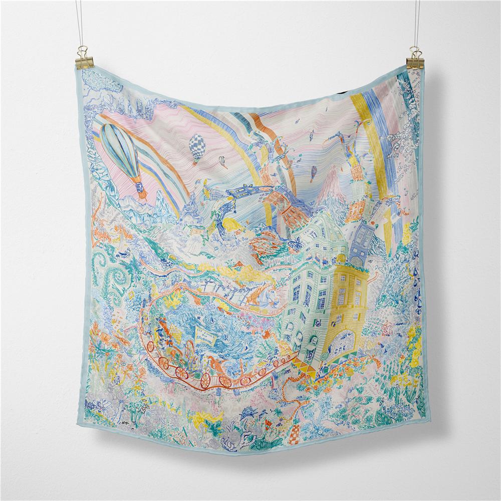 POBING Твиловый шелковый платок Женский принт Водный город Квадратные платки Бандана Маленький хиджаб Фуляр Леди Галстук Повязка на голову Шейный платок 53СМ