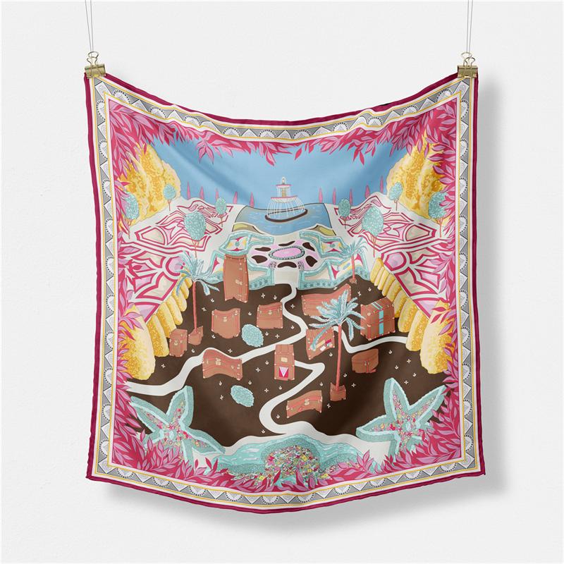 Твиловый шелковый платок Женский Лошадь Цветочный принт Квадратные платки Шали Бандана Маленькие хиджабы Фуляры Женский галстук Повязка на голову Шейный платок 53СМ