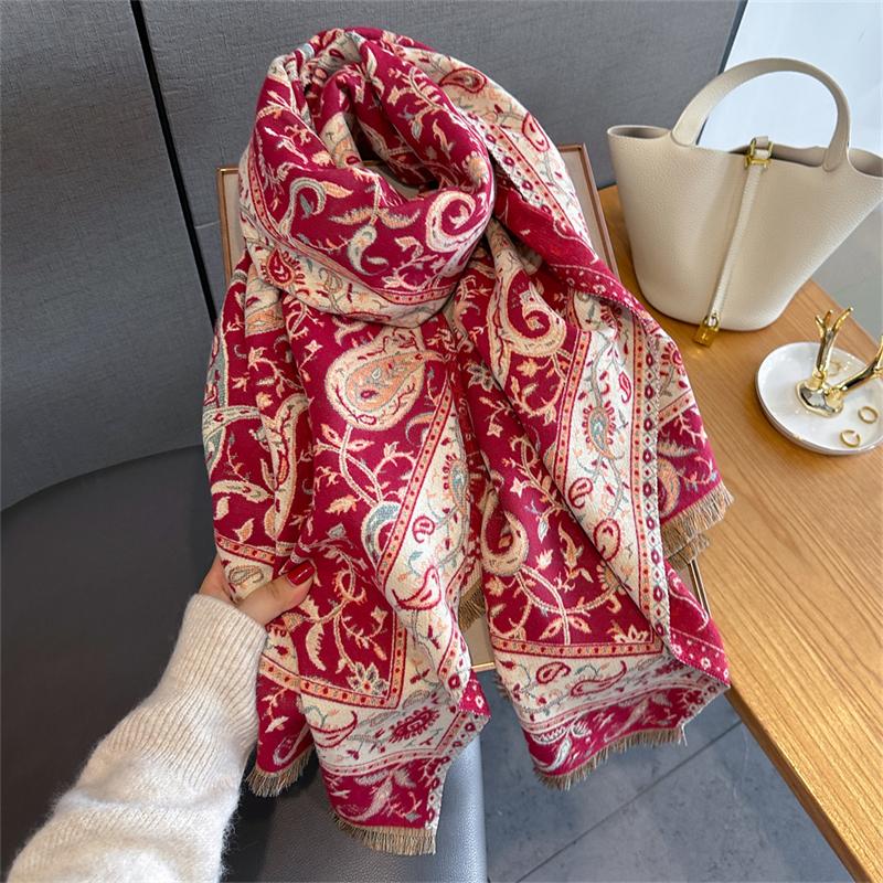 Дизайнерский цветочный принтованный кашемировый шарф для женщин, зимние пашминовые шали и накидки, толстые теплые палантины-буфанда, роскошное одеяло