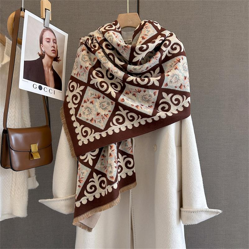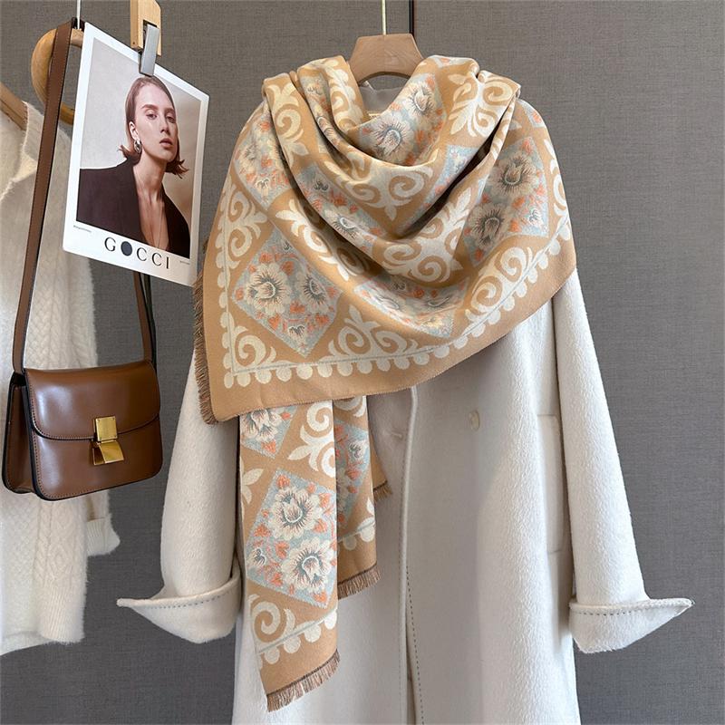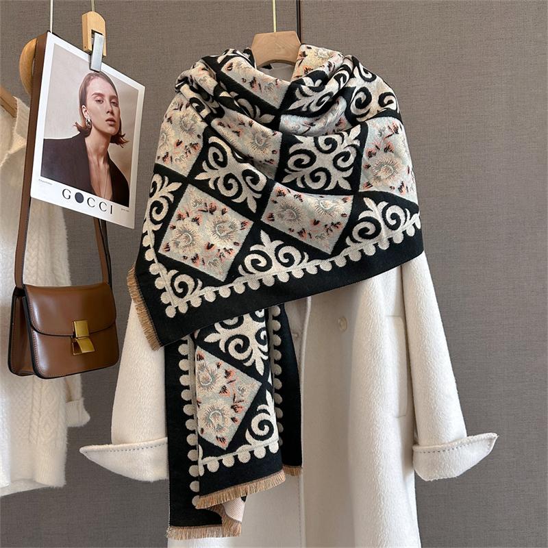 Зимний теплый кашемировый шарф для женщин, роскошный принт, пашминовая шаль, шейный платок, женская повязка на голову Bufanda Echarpe Design