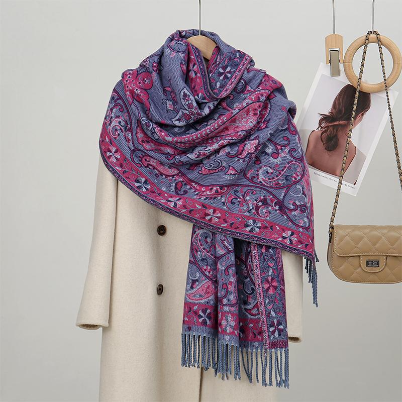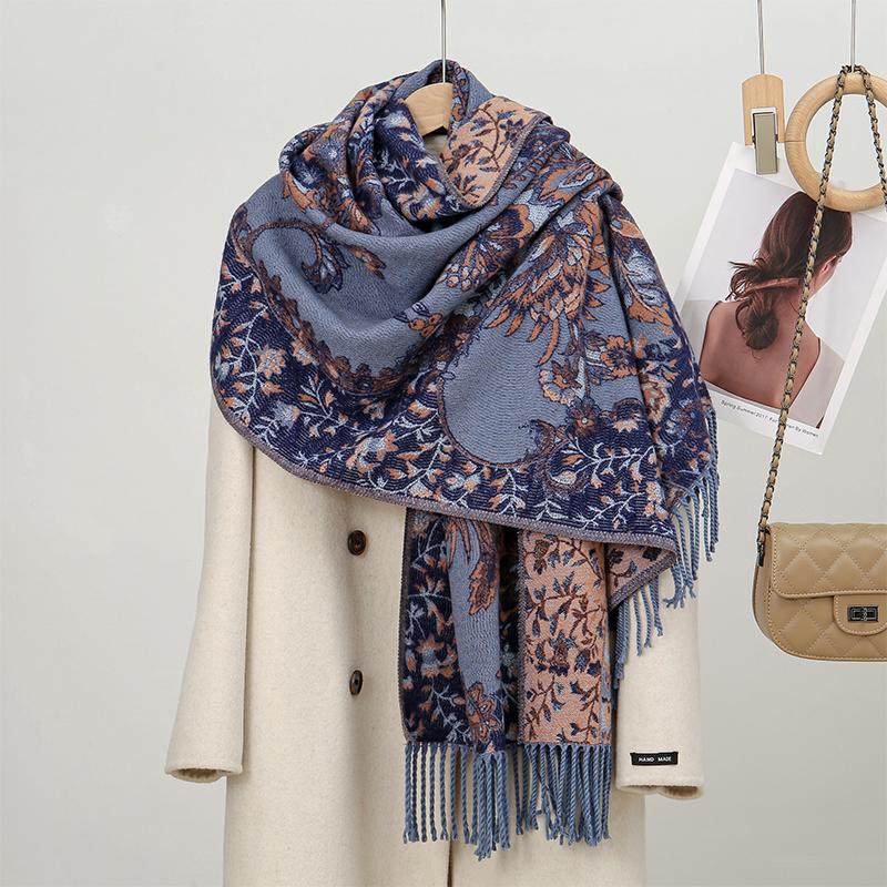 Зимний теплый кашемировый шарф для женщин, вышитое одеяло из пашмины, толстая шаль, шейный платок, модный пончо Bufanda Echarpe