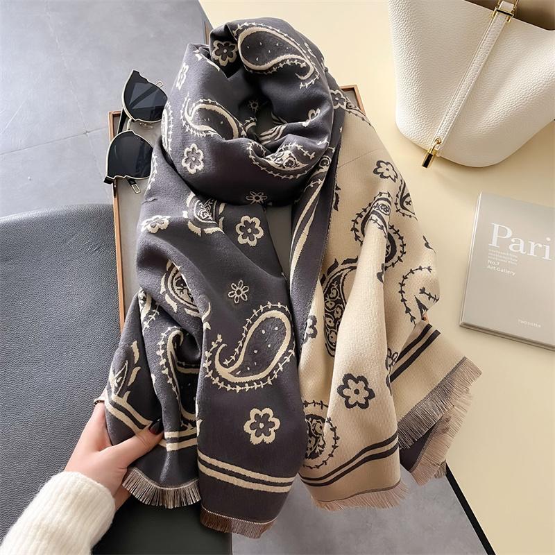 Новый кашемировый шарф с принтом пейсли для женщин, толстый, зимний, теплый, роскошный, шаль, накидка, женское одеяло из пашмины, дорожный палантин, пончо