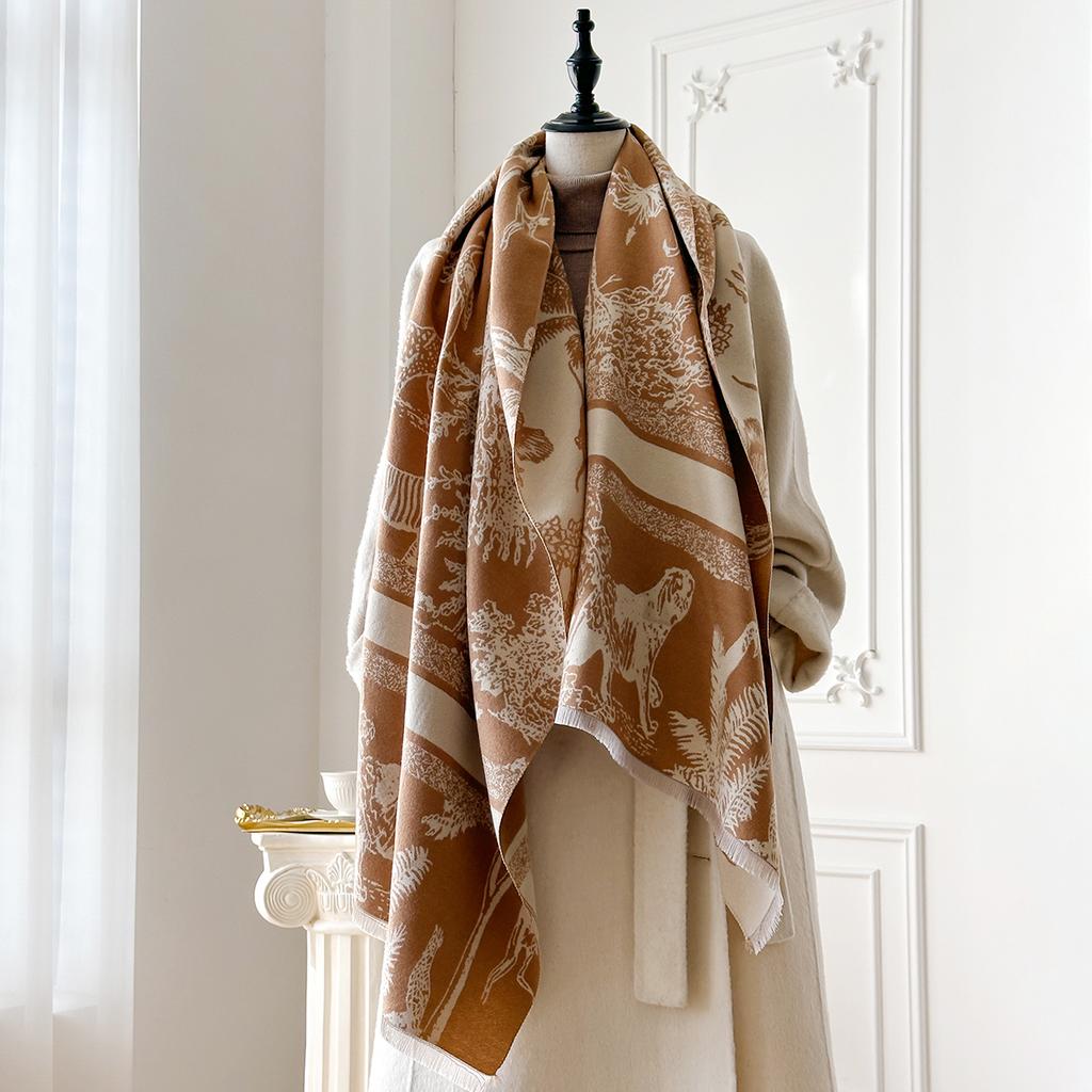 Бренд Элеганс Двусторонняя печать Шарф Мягкий Теплый Бахрома Пашмина Шаль Осень и Зима Уличный Холодостойкий Ветрозащитный Плед