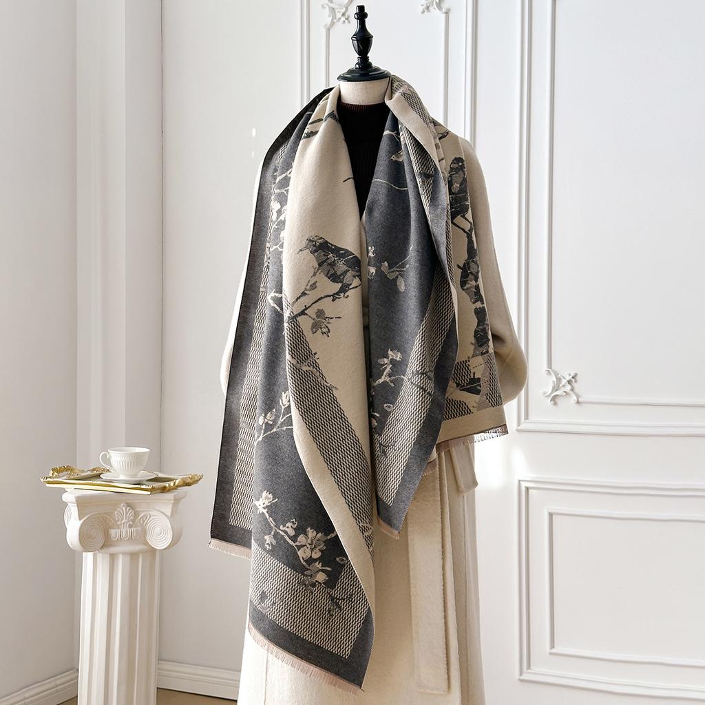 Роскошные шарфы с принтом птичьей ветви для женщин, теплые зимние, из имитации кашемира, пашмины, шали, женские толстые одеяла-накидки, шарф