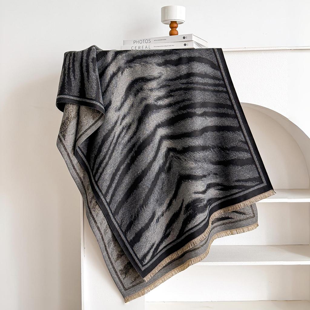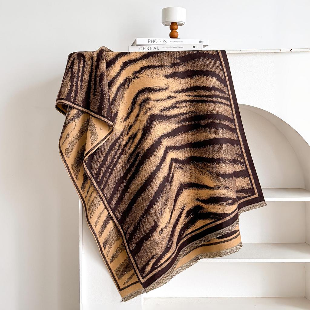 Новая элегантность Двусторонний шарф с леопардовым принтом Теплая шаль-пашмина с бахромой Осень и зима Уличный Холодостойкий Ветрозащитный Плед