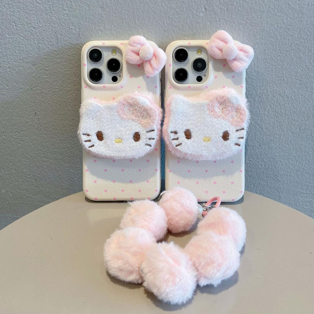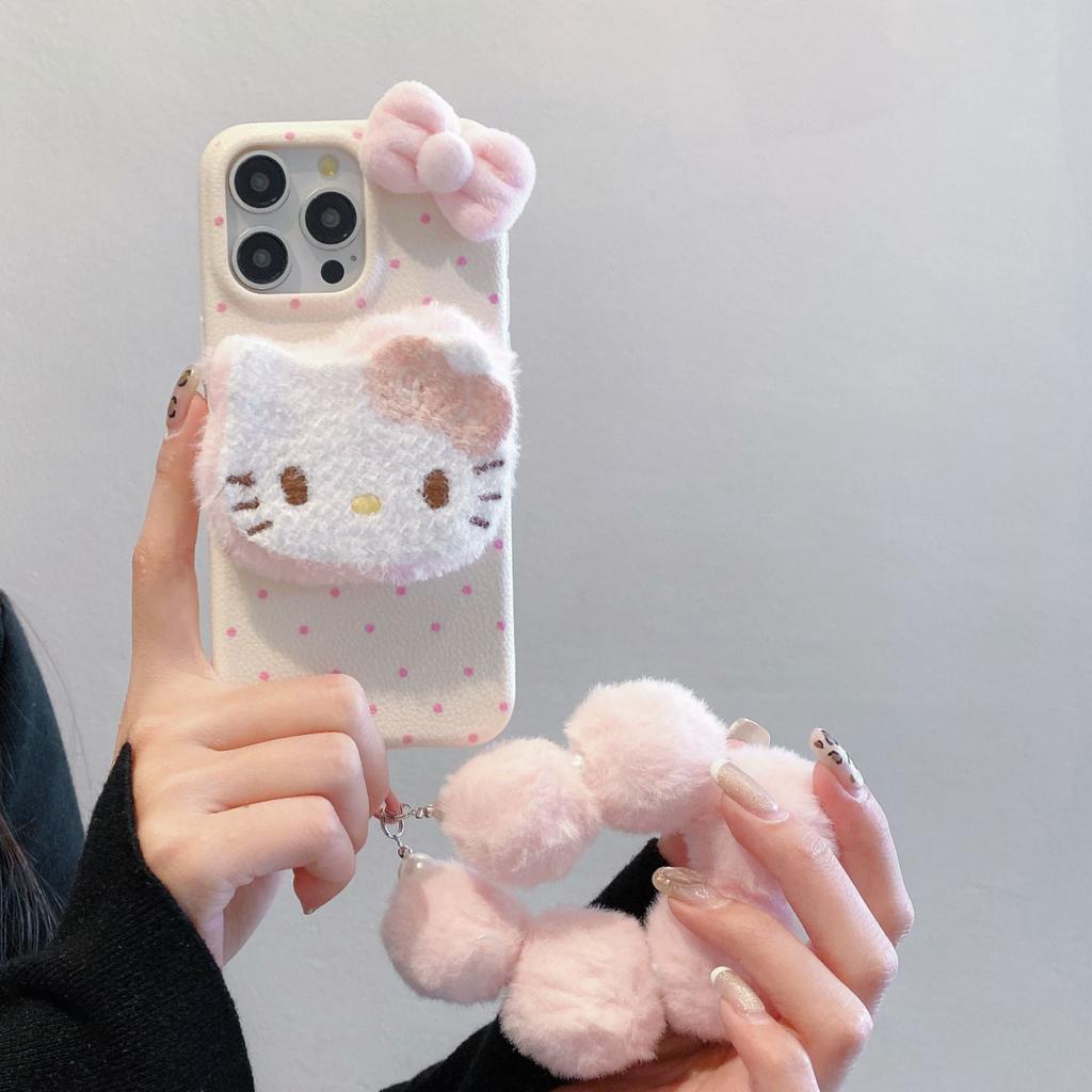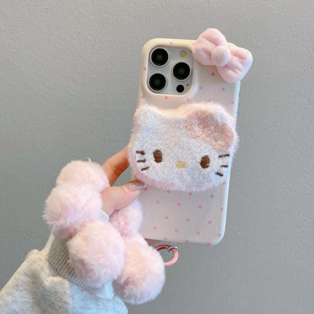 Осень и Зима Плюшевый KT Cat Подходит для 16promax Apple 15 Чехол для мобильного телефона IPhone 15 Новый 13 Женский 12 Защитный чехол